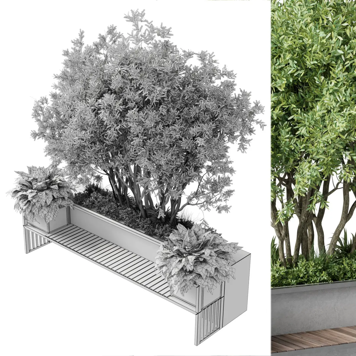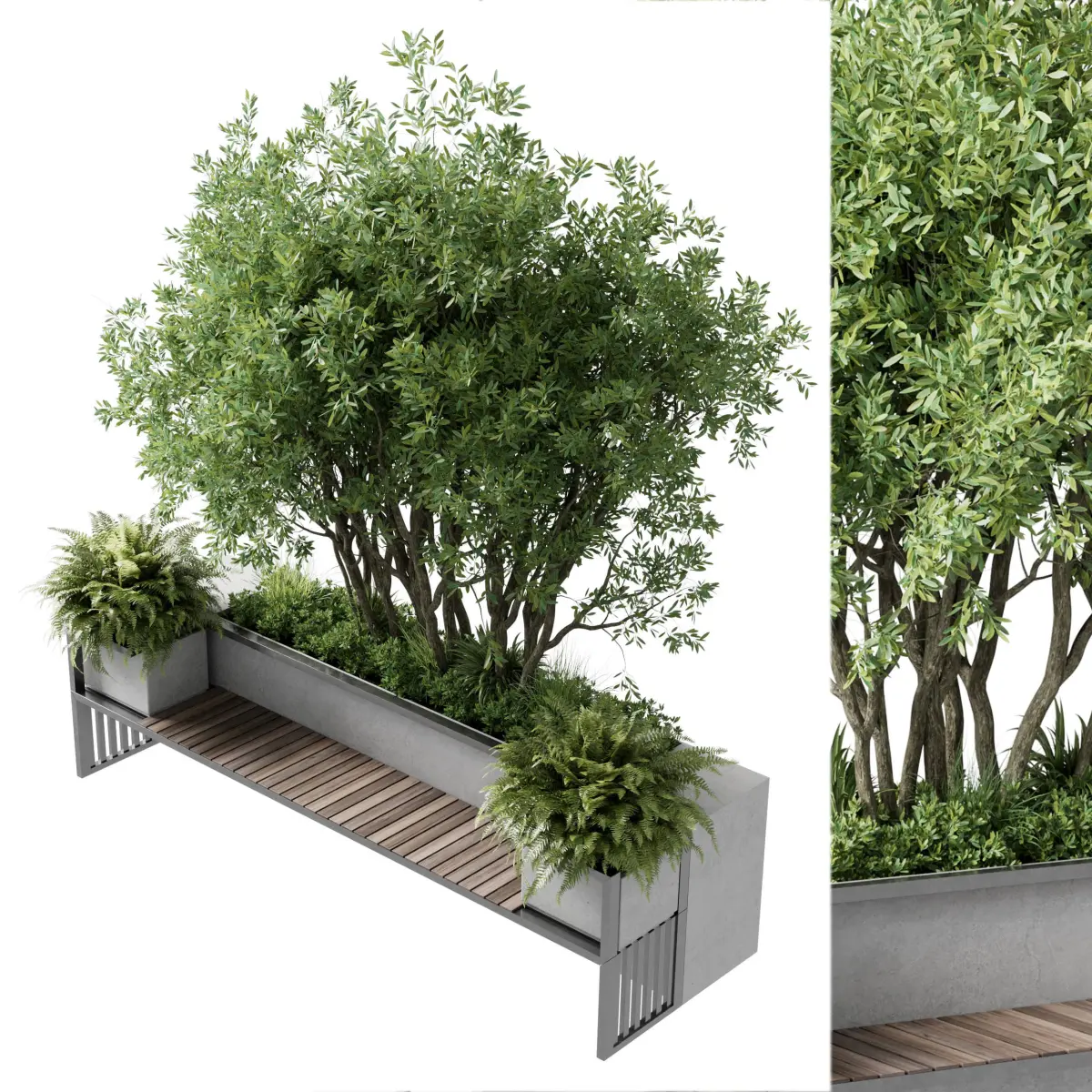 Urban Environment - Urban Furniture - Green Benches With tree 41File 3dmax 2015 vray & corona