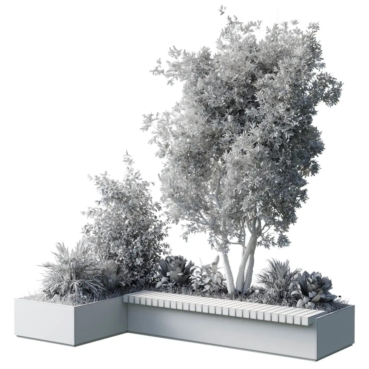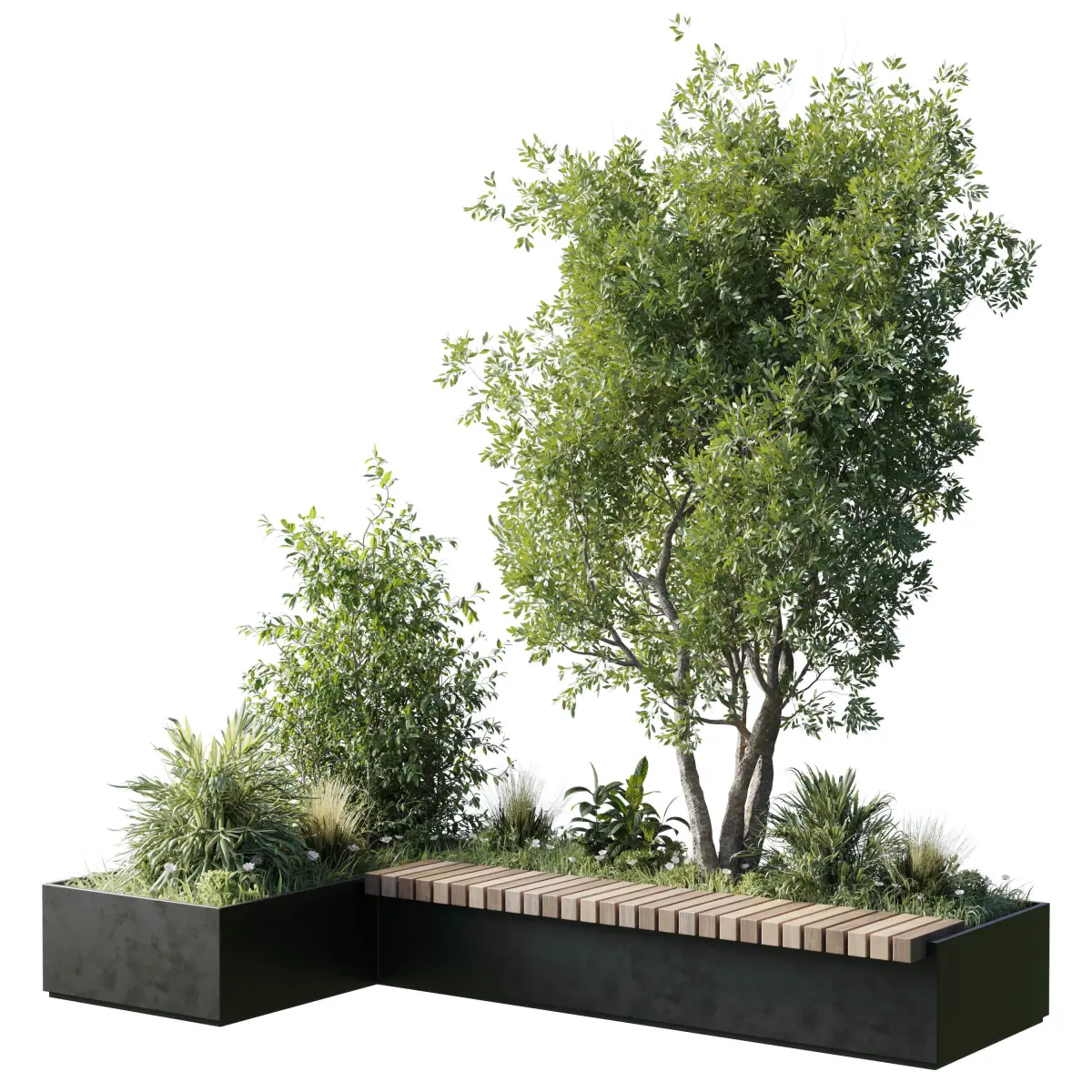Urban Environment - Urban Furniture - Green Benches With tree 45