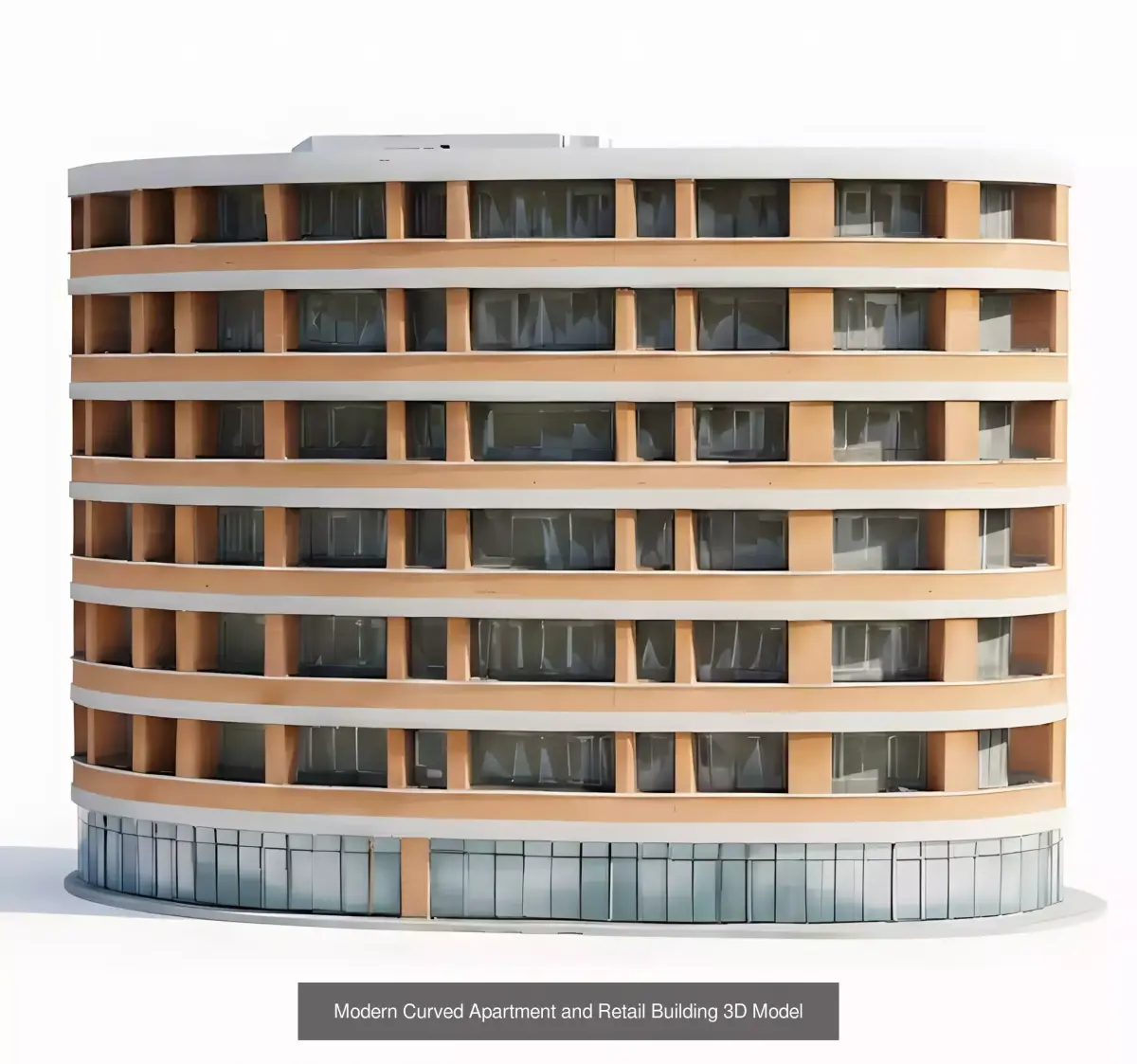 Modern Curved Apartment and Retail Building: A contemporary mixed-use structure featuring organic curves, glass balconies, and ground-floor retail space.