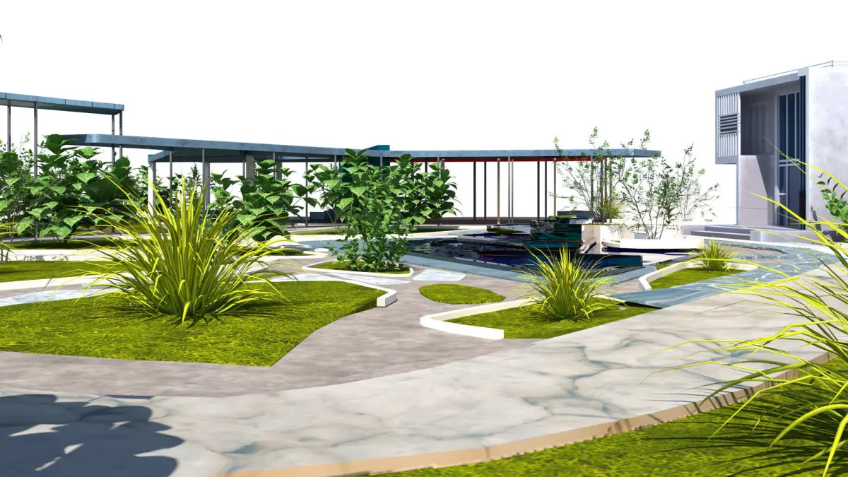 - Innovative Canopy: A gracefully arched canopy structure spans the walkways, providing shade and aesthetic allure.