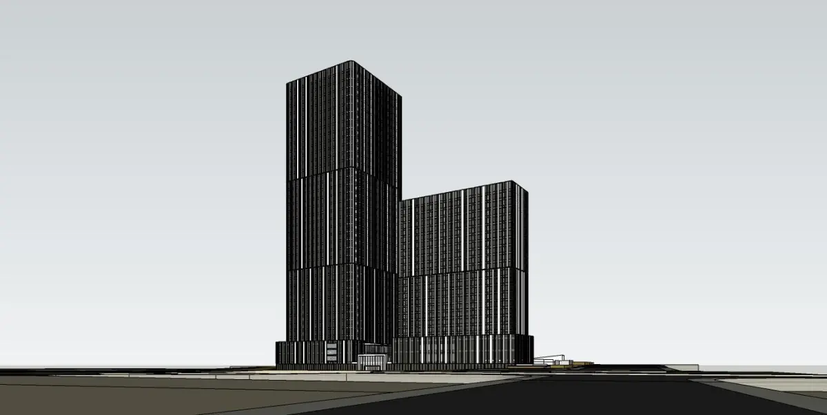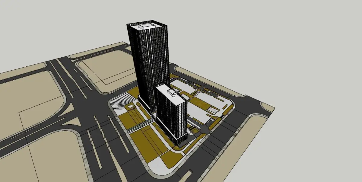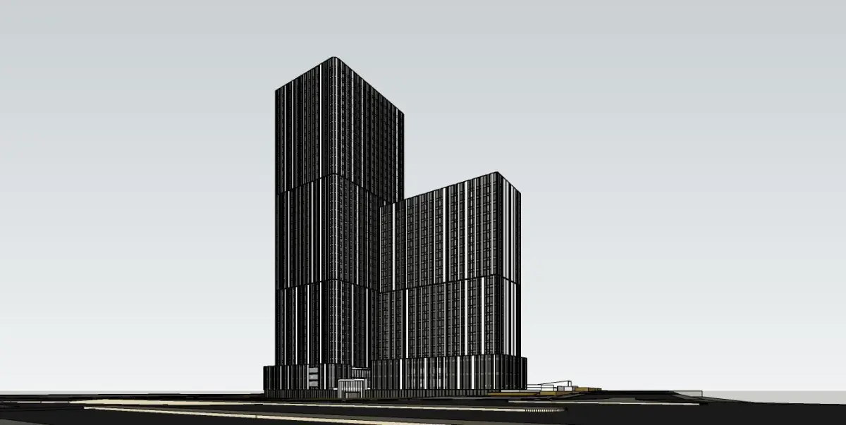 [Urban Oasis Office Building] [Skyline Harmony] architectural proposal embraces the essence of modern style, presenting itself in a unique high-rise tower form. The design aims to seamlessly blend architecture with the city, creating a harmonious ambiance. The glass facade mirrors the surrounding environment, infusing the space with energy and vitality. The architectural form is sleek and streamlined, showcasing the distinctive urban style and charm. Stepping into this space feels like traveling through the city, experiencing the rhythm and vitality of urban life, embarking on an unexpected journey to the skyline.