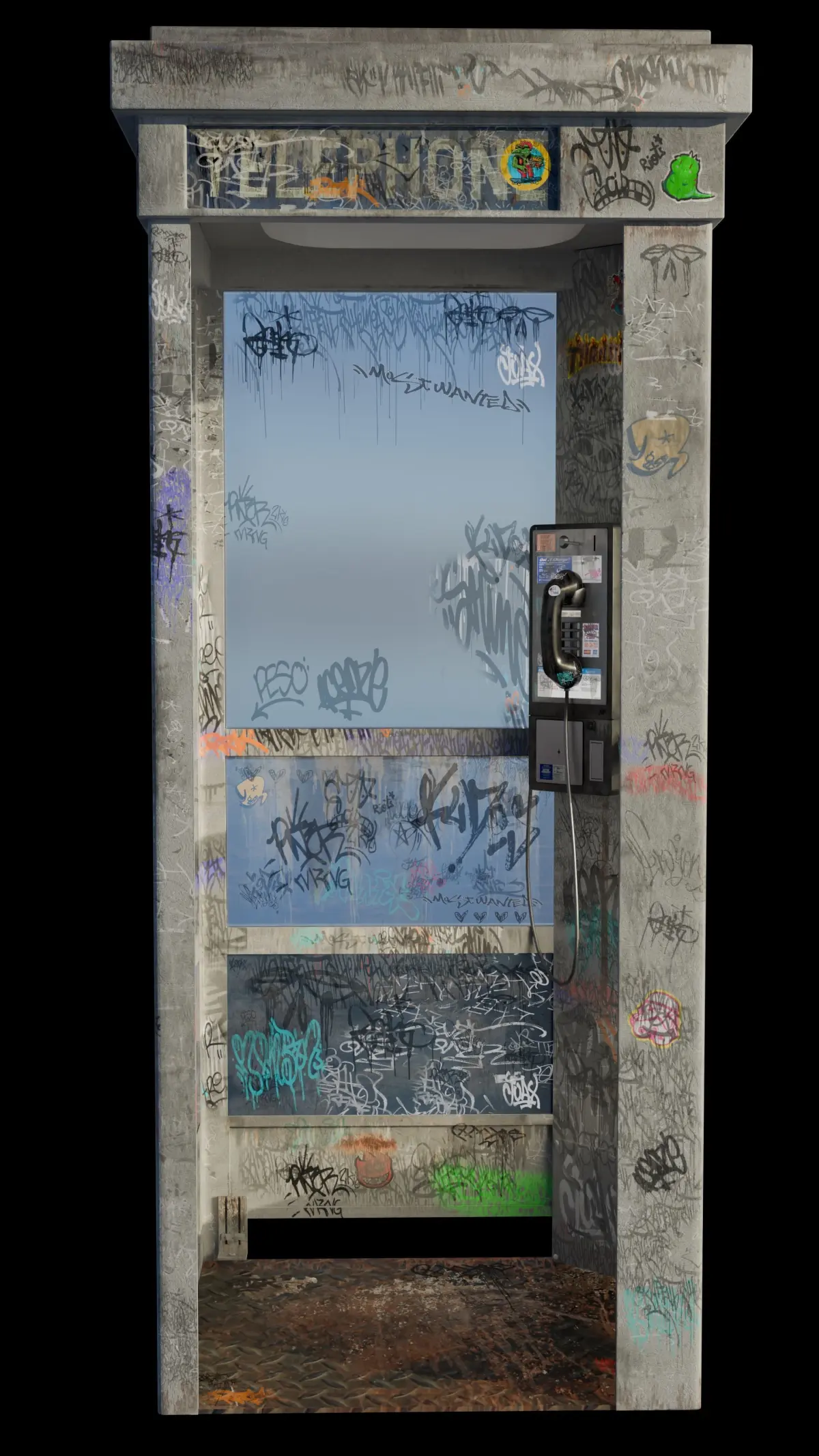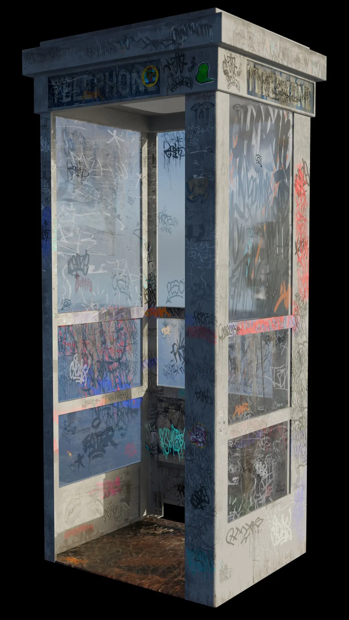 Detailed Model: Every aspect of this phone booth, from the weathered metal panels to the scratched glass windows, is intricately modeled to convey a sense of urban decay and character.Graffiti Artwork: The phone booth showcases vibrant and expressive graffiti art, adding authenticity and a streetwise vibe to your scenes. The graffiti can be customized or replaced to suit different creative needs.Realistic Textures: High-resolution textures bring out the dirt, rust, and grime that accumulate on urban structures, enhancing the photorealism of the model.Versatile Use: Ideal for architectural visualization, urban scenes in games, film sets, or any project requiring a touch of urban realism.Multiple File Formats: Compatible with leading 3D software including Blender, 3ds Max, Maya, and more. Files include OBJ, FBX, and STL formats for seamless integration into your workflow.Scale and Dimensions: Modeled to real-world scale for accurate placement in any scene or environment.