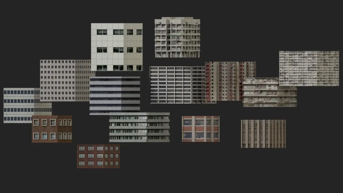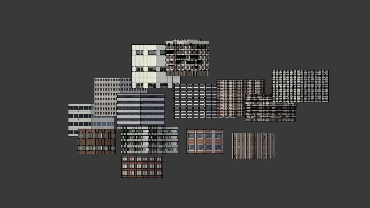 -The Building bases,-Different Variations of Roofs,-Added Rooftop Props( AC Units, Cabin, Tower ,etc).