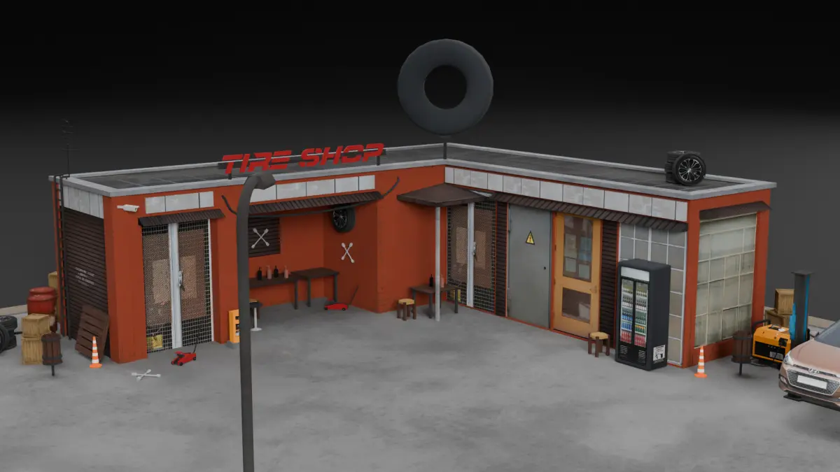 Airport – A 5,500-triangle low-poly model featuring 2048x2048 textures, perfect for cityscapes, flight simulations, and transport hubs.Gas Station – A 21,740-triangle highly detailed structure, using multiple texture atlases (2014 resolution) for realistic fueling stations and highway stops.Tire Shop – A 18,850-triangle model designed for mechanic garages, car repair shops, and racing environments, featuring 2048x2048 textures.Each model is UV-mapped, game-ready, and available in FBX, OBJ, and STL formats.