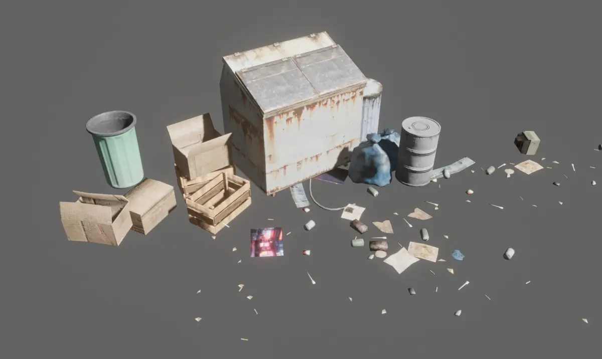 3D model of urban street props for exterior cyberpunk or retro scenes. This set is suitable for filling any game, any visualizations. Modular sections are easy to piece together in a variety of combinations. The example scene through included in the package. It’s readily available to import in Unity3D and UnrealEngine,ue5/4