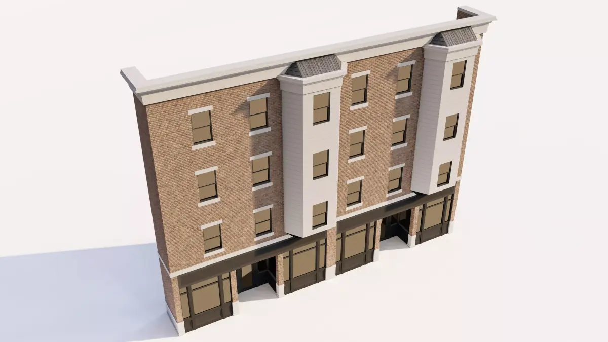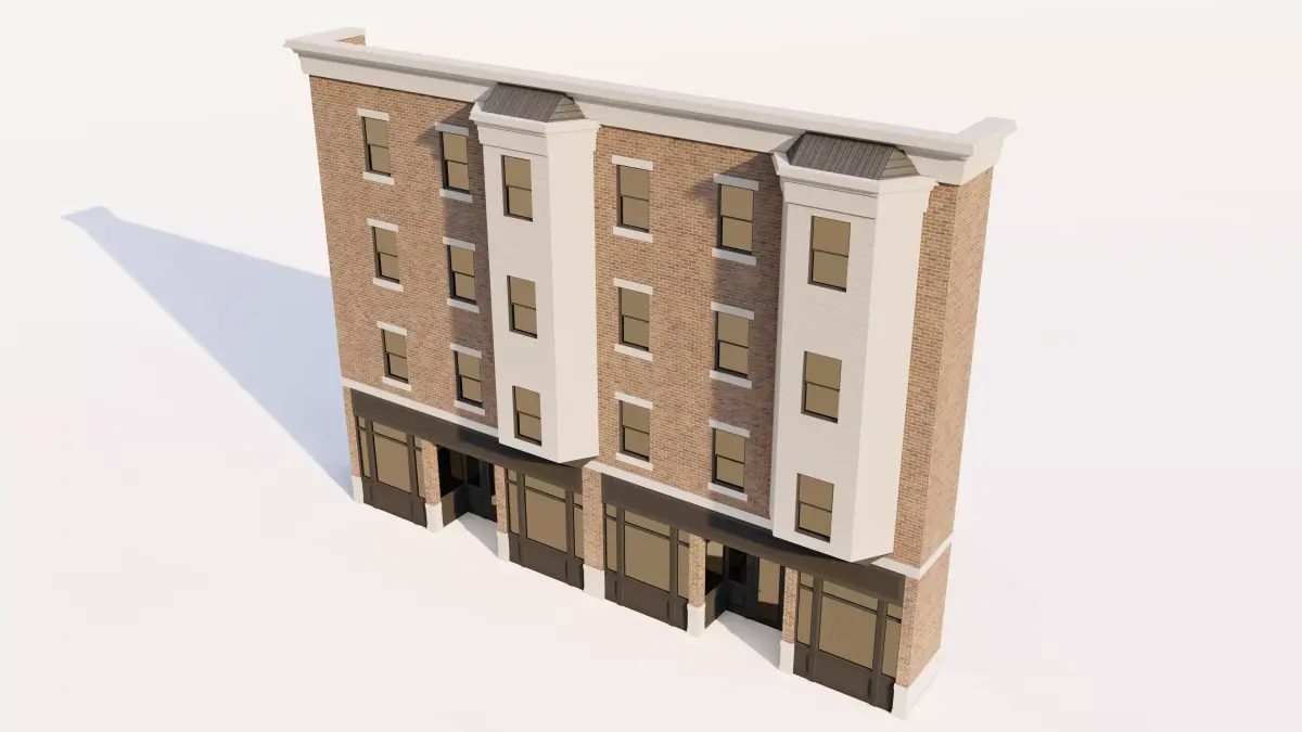 Scene-Ready Unit: Designed as a self-contained architectural unit that can be easily tiled to create a continuous European-style streetscape.
