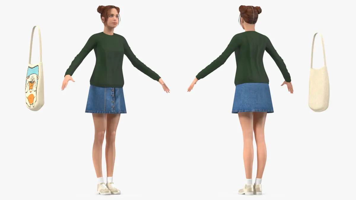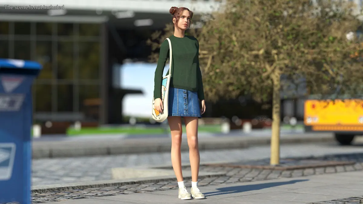 Urban Style Young Woman Rigged for Cinema 4D a young woman in popular modern streetwear casual clothes or dress.