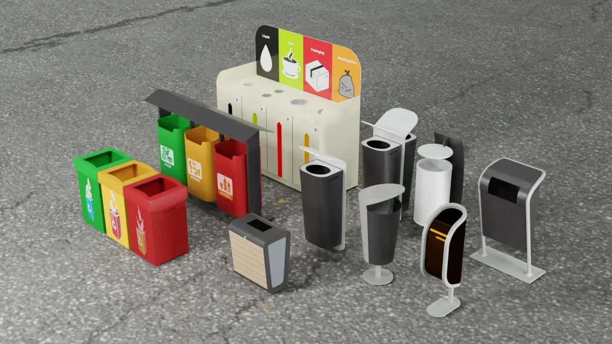 Urban Trash Pack Scene - Objects represented as seen in renders.Urban Trash Pack Kit - All objects included in pack.