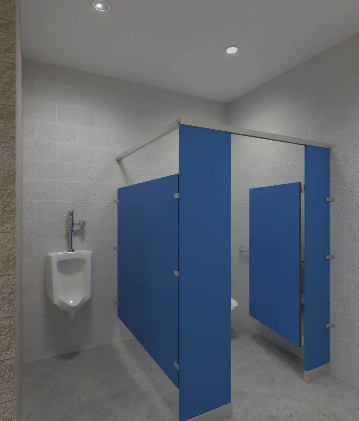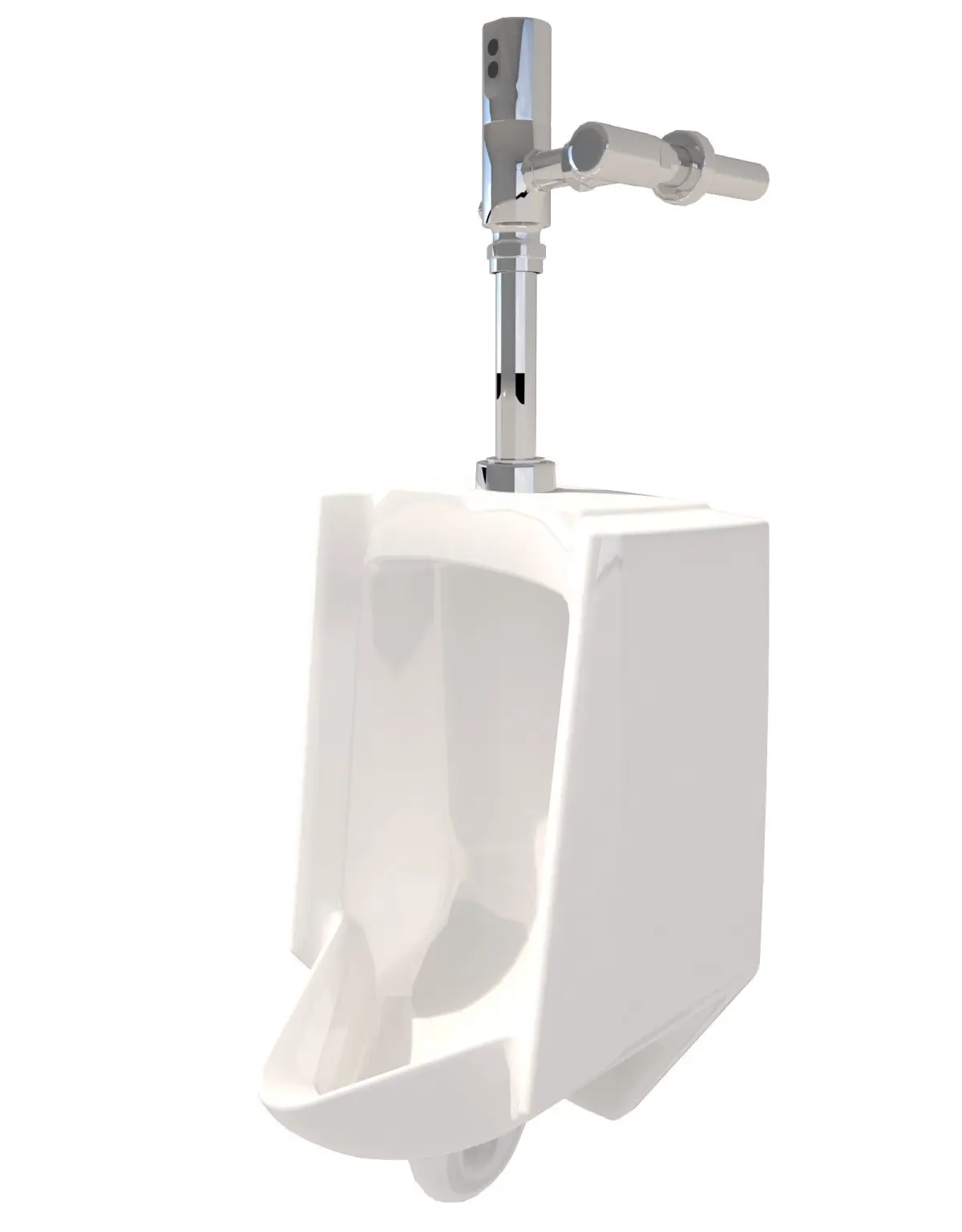 3D Model of a Urinal and hands free flush valve for a restroom, bathroom scene