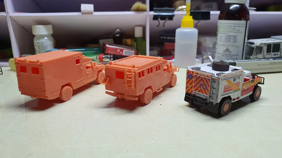 Uro Vamtac S3 Ambulance version in scale 1/64.-Rescale: 1/64 to 1/72: 0,8889% and 1/64 to 1/87: 0,7348%-Model have no interior.-Body and wheels are separated.-Perfect for print 3D, diorama models.-Made in Sharp3D