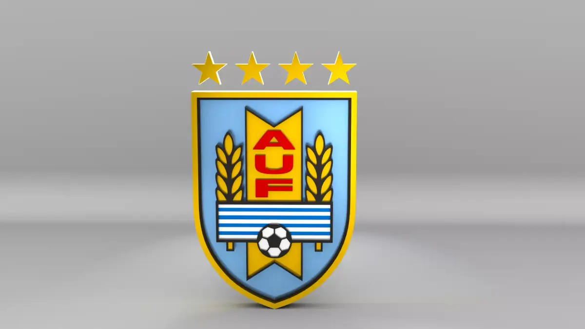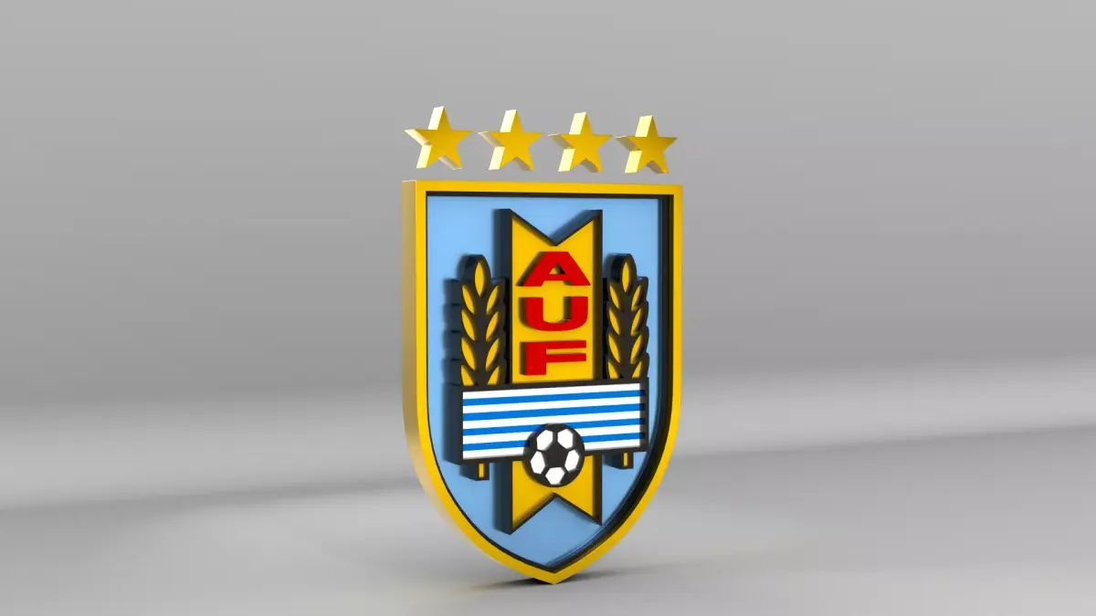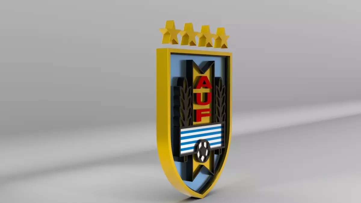 Uruguay National Soccer Team Logo, modeled and rendered in Maya using Redshift, PBR Textures included (BaseColor, Metallic, Roughness and Normal Maps).