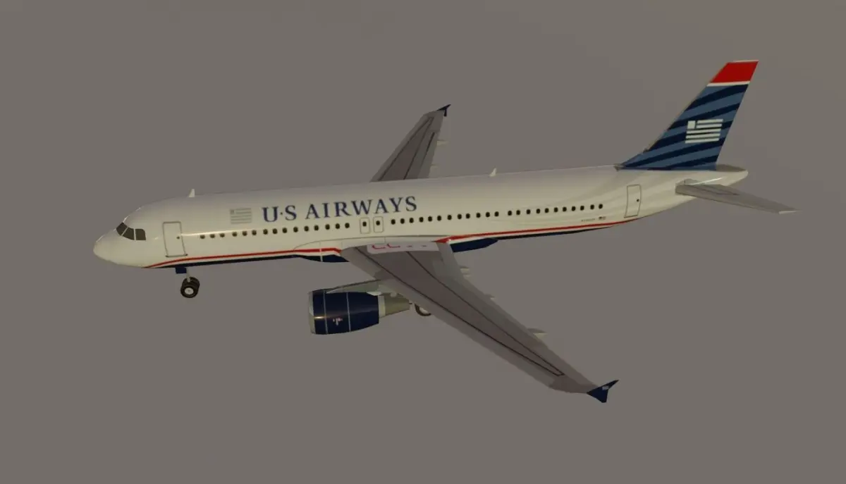 Here is a model of this plane in US Airways livery.US Airways Flight 1549 was a regularly scheduled US Airways flight from New York City's LaGuardia Airport to Charlotte and Seattle, in the United States. On January 15, 2009, the Airbus A320 serving the flight struck a flock of birds shortly after takeoff from LaGuardia, losing all engine power.