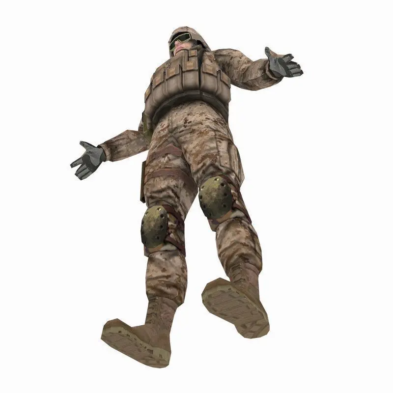 3D model of an US Army Delta Force soldier in ACU camouflage uniform. The attached equipments are individual meshes and can be removed or replaced. The model is fully rigged in MAX, limbs fingers, feet.