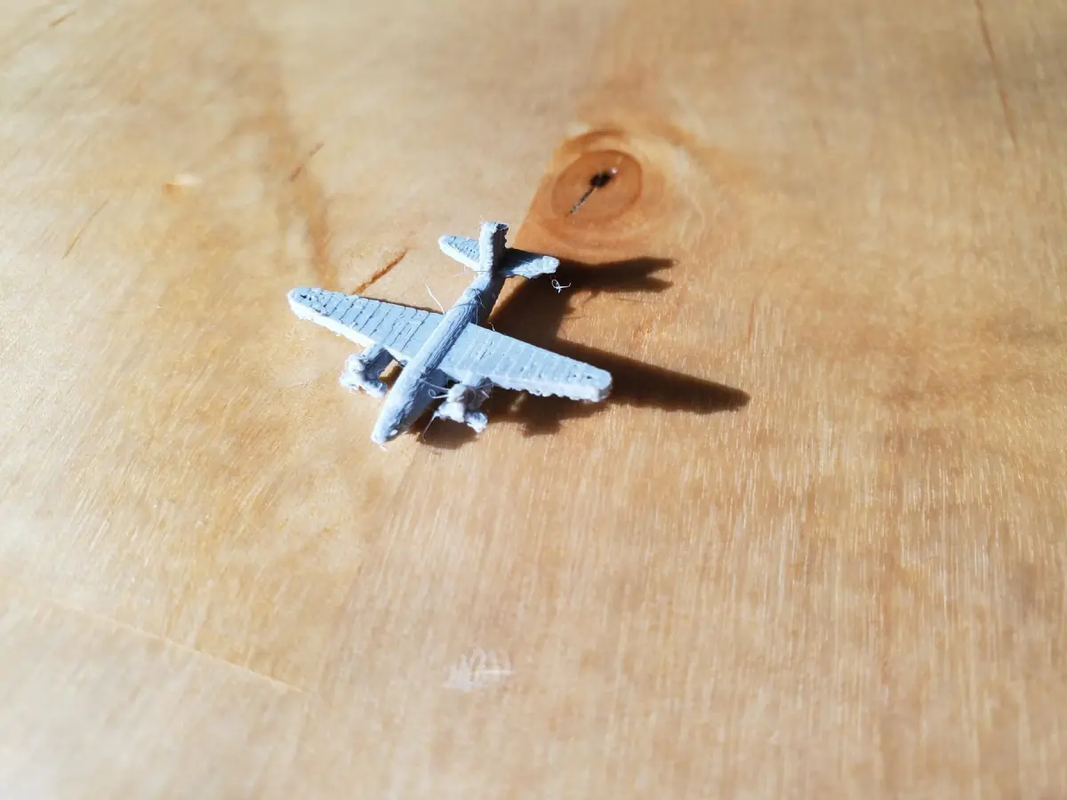 This model is designed and tested at 1/900th scale, but up-scaling and down-scaling are possible. Since the model is optimized for 1/900th scale, it is not ideal to print larger versions due to a lack of detail. The model has been enlarged along the z axis to allow for better printing and accentuation of detail. The model has also been given thicker elements for strength. The wingspan and overall length are to scale.