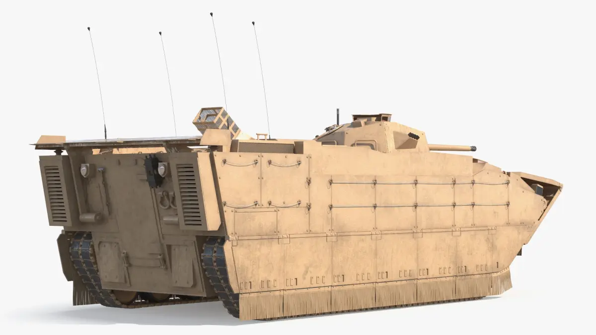 US Marine Amphibious Assault Vehicle Wet Rigged for Maya is a 3d model of a military-grade vehicle equipped with advanced defense systems and tactical capabilities designed for challenging terrains and combat scenarios.