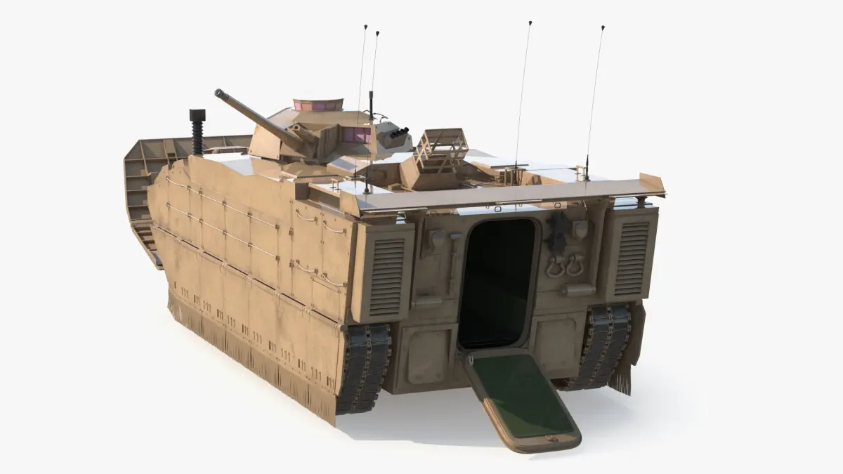 US Marine Expeditionary Fighting Vehicle Rigged is a high quality, photo real 3d model that will enhance detail and realism to any of your rendering projects. The model has a fully textured, detailed design that allows for close-up renders, and was originally modeled in 3ds Max 2020 and rendered with V-Ray. Renders have no postprocessing!