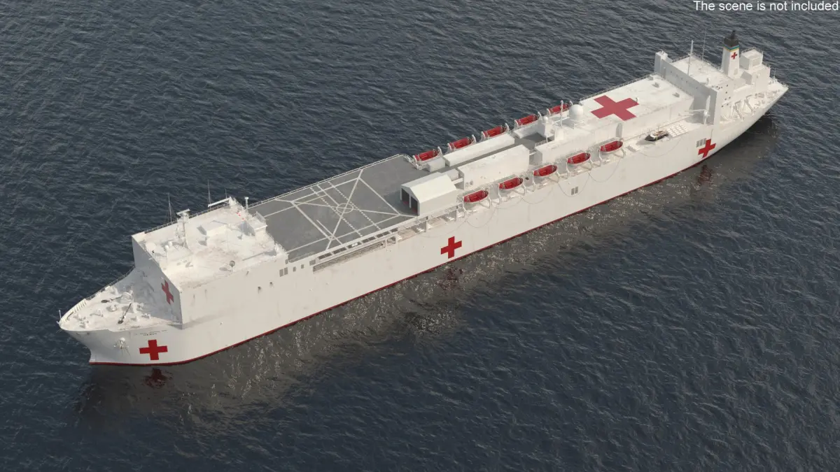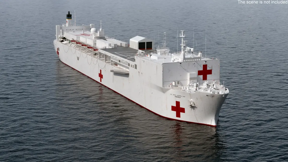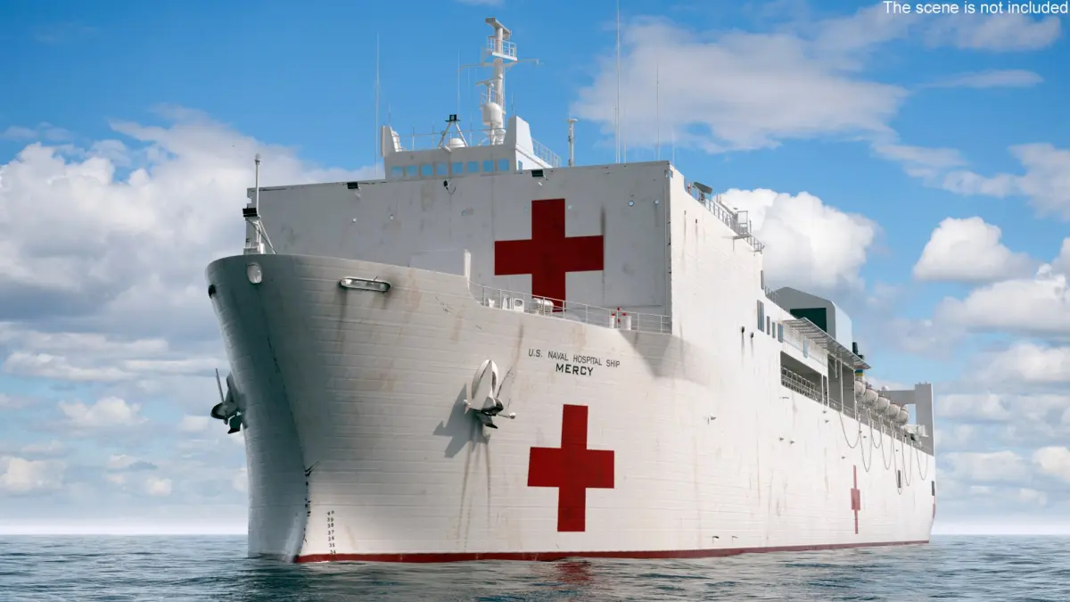 US Naval Hospital Vessel Mercy is a three-dimensional model of a U.S. Navy hospital ship, designed for providing medical care and support.