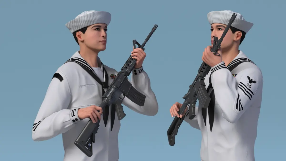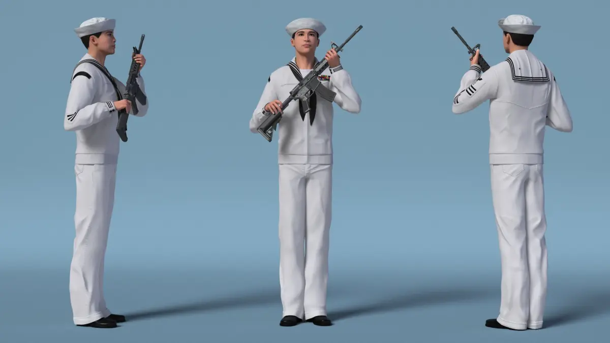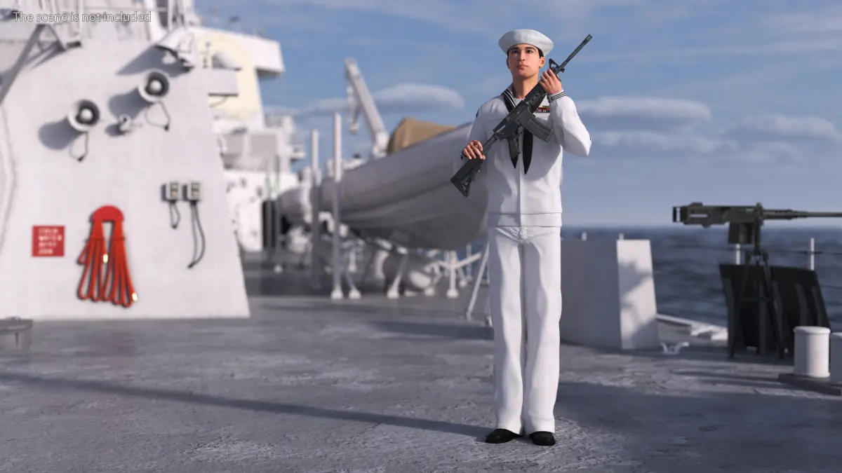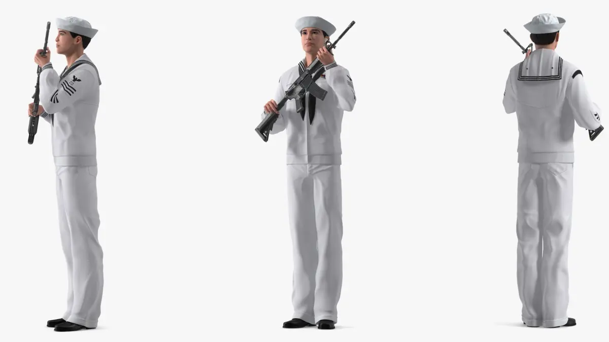 US Navy Asian Sailor with Rifle is a three-dimensional model of a traditional naval attire, commonly referred to as a sailor suit, designed for naval personnel.