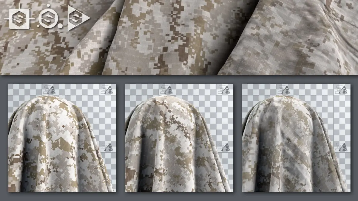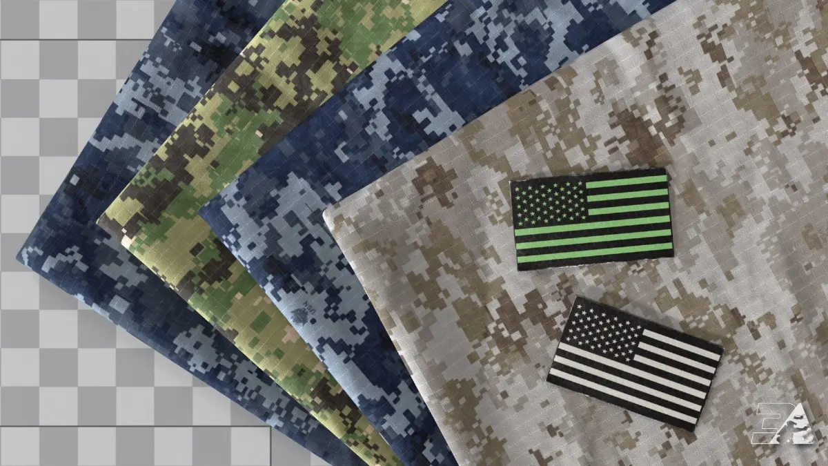 Genuine US Navy Camo patterns with procedural Ripstop and Twill fabrics.The patterns are handmade in Photoshop and they are the exact reproduction of the real ones (no procedural). The Ripstop and Twill have been created procedurally in Substance Designer. The .sbsar file allow to tweak a large amount of parameters inside Substance Player and Painter and achieve a lot of different variations.