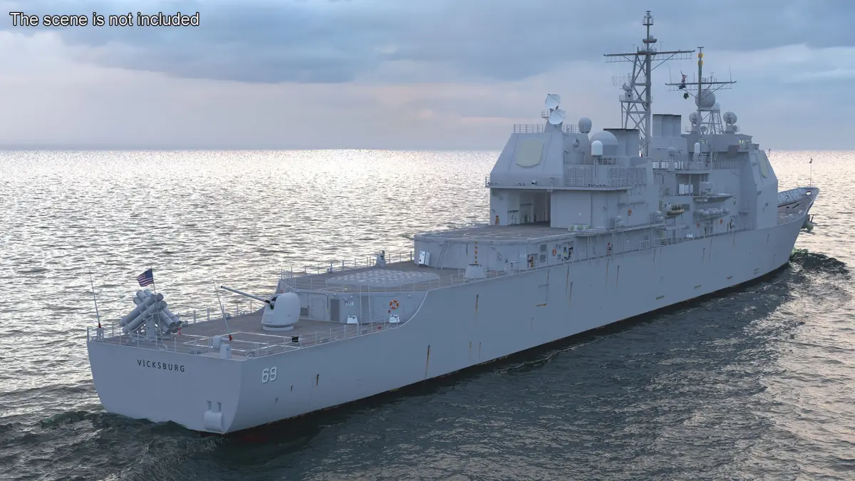 US Navy Destroyer USS Vicksburg CG-69 is a 3d model of guided missile cruiser of the United States Navy, specifically part of the Ticonderoga class.