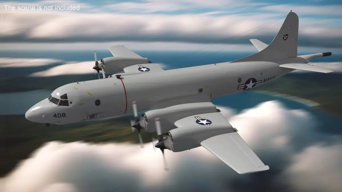 US Navy P3 Orion Maritime Patrol Rigged for Maya is a three-dimensional model of a maritime patrol aircraft, known for its long-range and anti-submarine warfare capabilities.