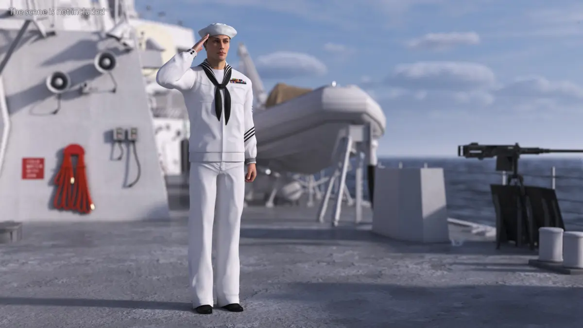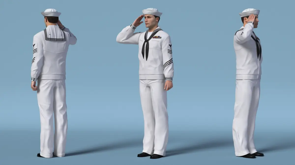 US Navy Sailor Salutes is a high quality, photo real 3d model that will enhance detail and realism to any of your rendering projects. The model has a fully textured, detailed design that allows for close-up renders, and was originally modeled in 3ds Max 2020 and rendered with V-Ray. Renders have no postprocessing!