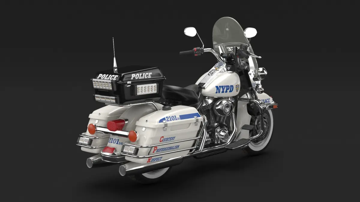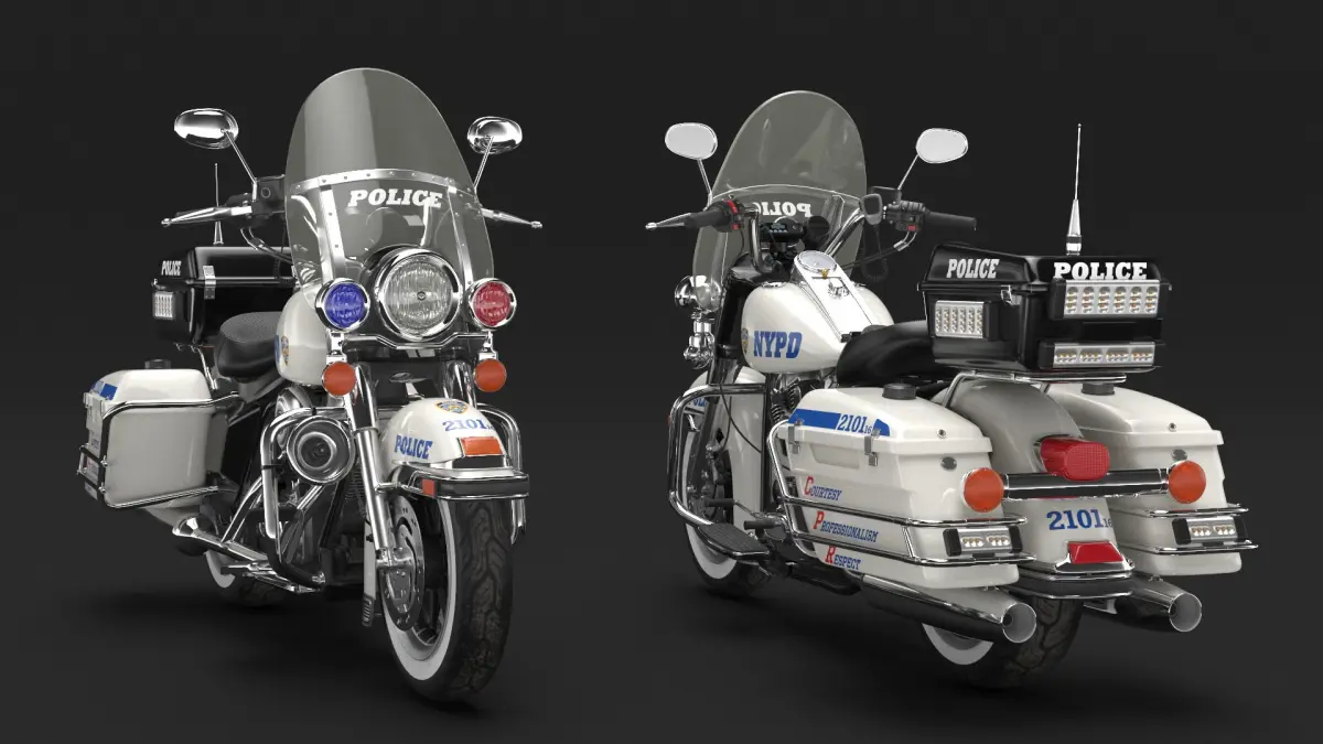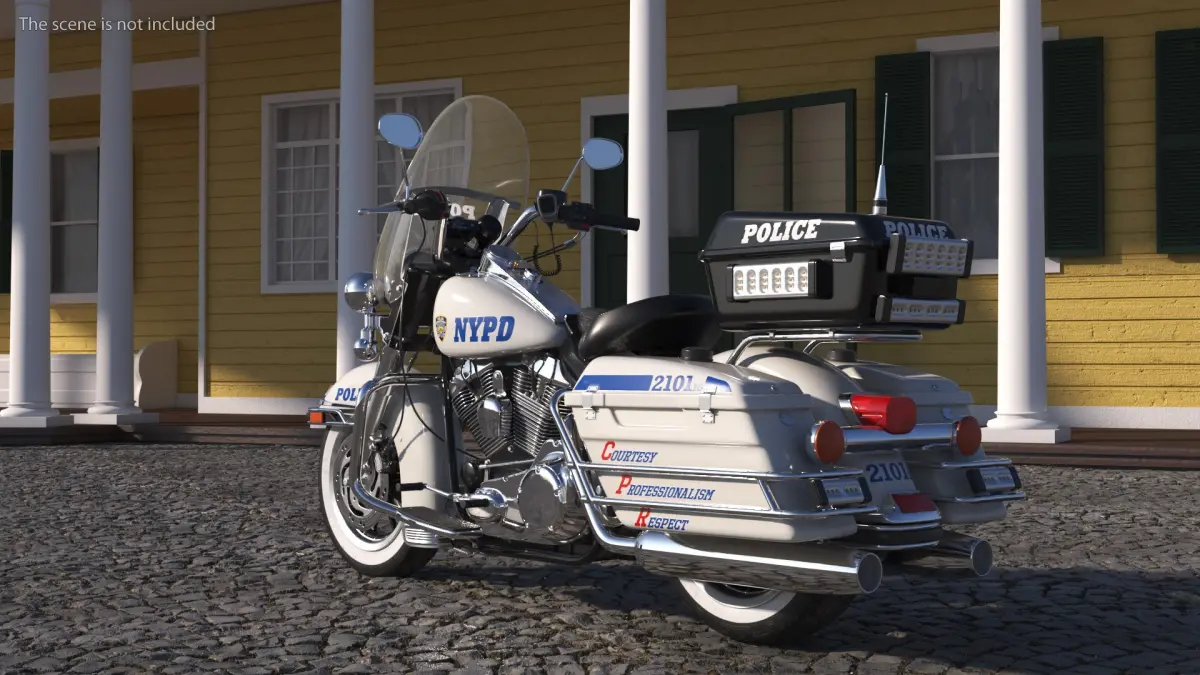 US NYPD Motorcycle Road King is a 3d model of a police motorcycle commonly used by the New York Police Department, designed for urban patrols, traffic enforcement, and ceremonial duties.
