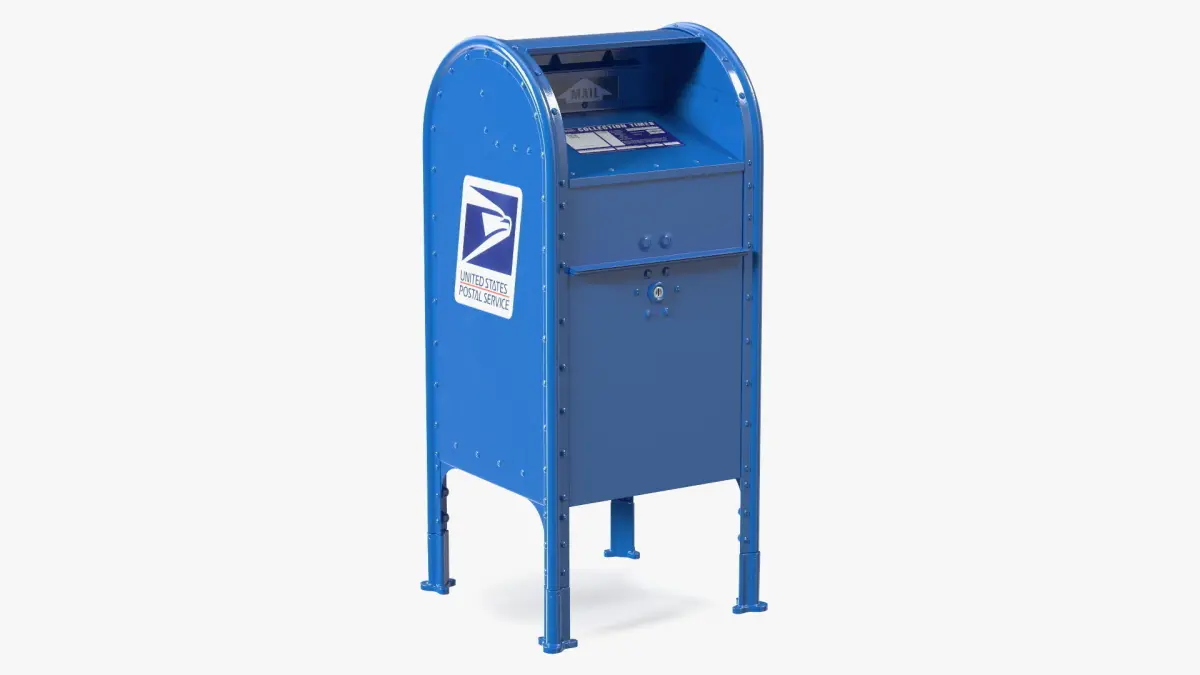 US Post Office dropbox is a 3D model of street mail managing device which is a street mailbox, which is locking container which used for outgoing post store.Mail box which is a modern postal service item, and which is a security locking post, and which is a public street mailbox device. Mailbox storage accessory which is mail equipment used to outgoing letter mail items (envelope type mailing correspondence) storing. For post communication services, postal delivering service equipment, mail transportation, postal service container accessories, express delivery services, mail services, post systems, and mail business promotional projects.