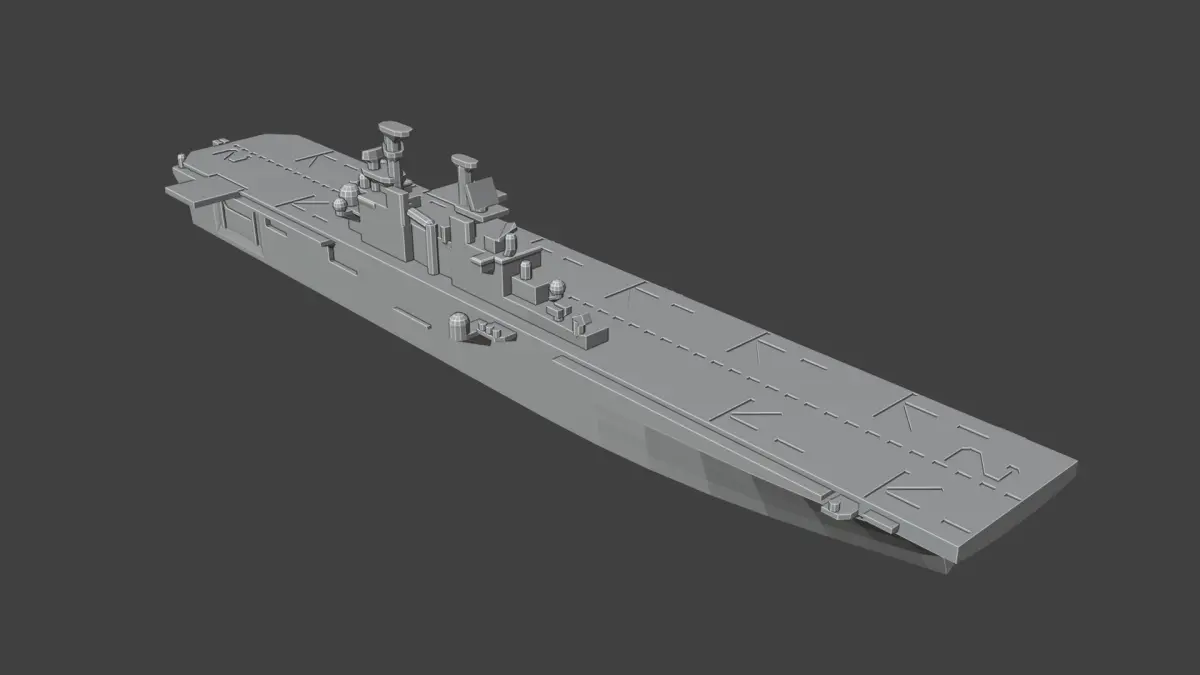 1/1800th scale Wasp-Class helicopter carrier model. Certain elements not to scale.