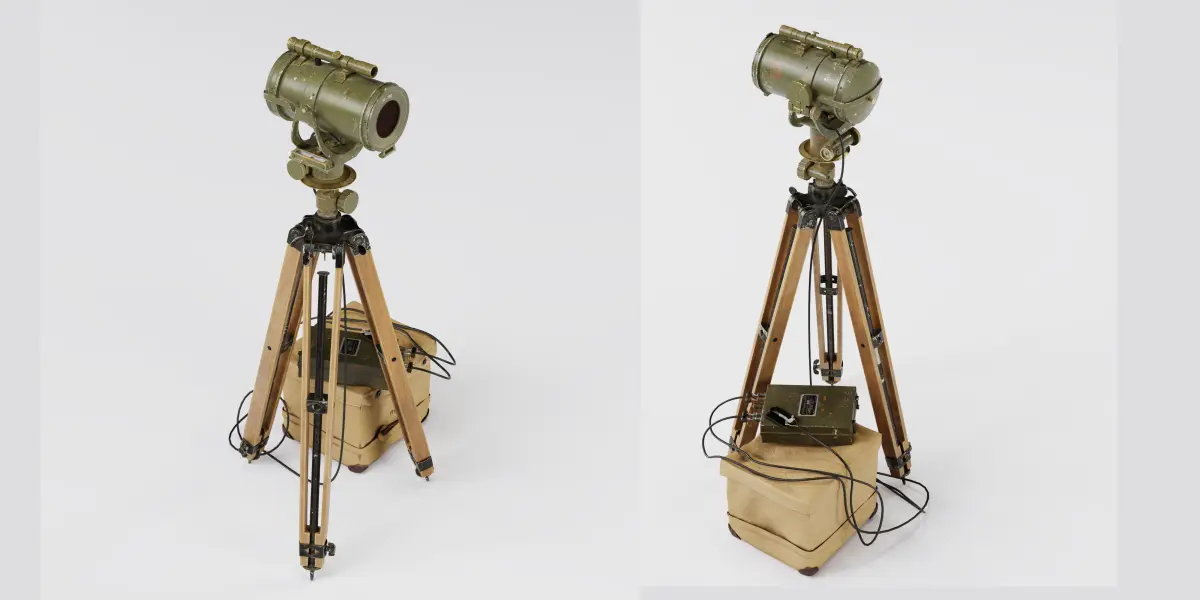 IntroductionEE-84 signal lamp is the sign to transmit morse code (blinker code) by day and night. The whole set weighs about 19 kilos and it has a range about the 4.5 kilometers in the sunlight the range of course longer at nighttime and it can be used by red or white flashes when the red flashes are using the Range is cut in half and for directing the light beam there's a telescopic site on top of the lamp the mount that is here is complete with leveling blub, micrometer scale and compass and tripod can also be used with the M65 telescope. Signal lamps like the ee84 is mainly used by field and coast artillery units, but during World War 2 it seems signal lamps like EE-84, was mostly used by already known as short party also known as beach master units, during amphibious operations the short party is responsible for ship to short communications and they also coordinate all the logistics on the beach.