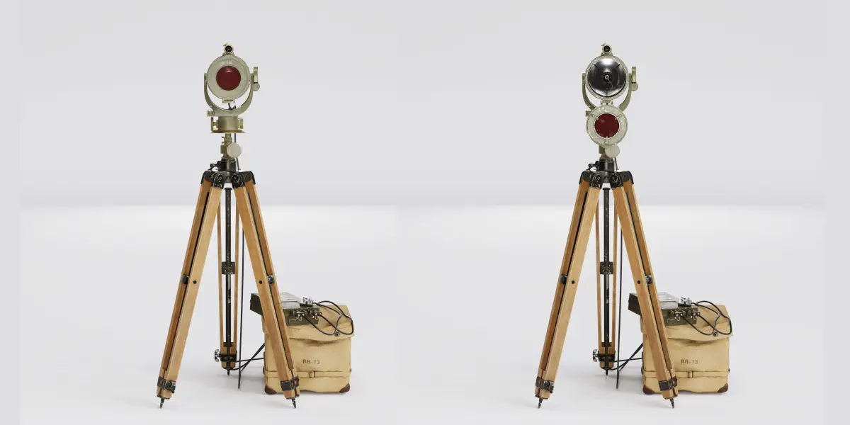 U.S. WWII Signal Corps, Lamp EE-84 high quality game ready 3D model, Available in low and high poly blender and FBX format. High poly version is subdivision ready, PBR 4k textures consisting of base color, Alpha, Displacement, Metallic, Normal and Roughness painted in substance painter. This product includes a Blender file, FBX exports, PBR material, info text and poster of product.**