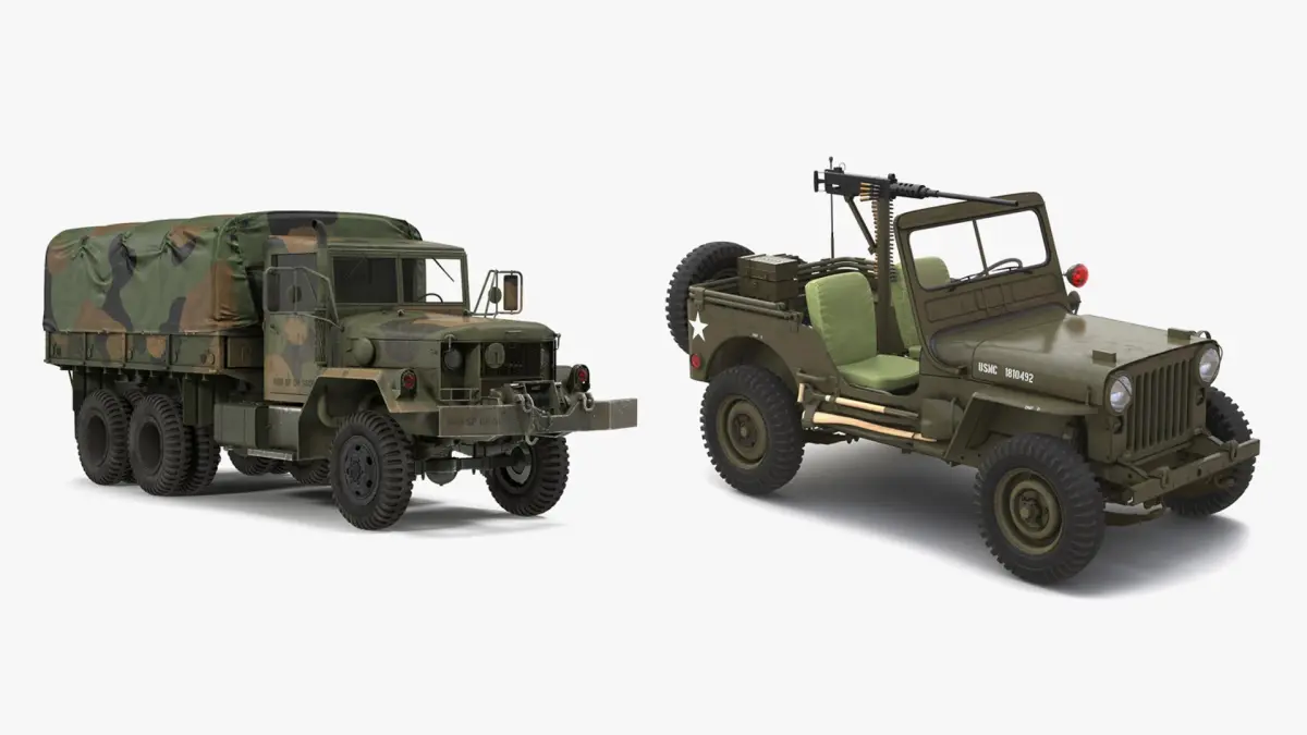 US WWII Vehicles Collection is a versatile set of 2 high quality, photo real models that will enhance detail and realism to any of your rendering projects.