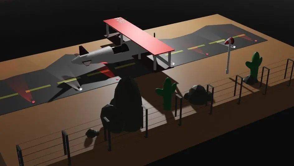 A SMALL AIRPORT LOW POLY ROCKS AND CACTUS AND WIRE CLOSING THE SURROUNDINGS ALL FOR SALE IN PACKAGES AND WITH THE AIRCRAFT*.*A * BATTLE AIRCRAFT REFLECTED IN DESERT AIR**ADDED FIELD LIGHTINGS FOR NIGHT AND NIGHT USE IN THE LOOKING DAMAGED AREA...