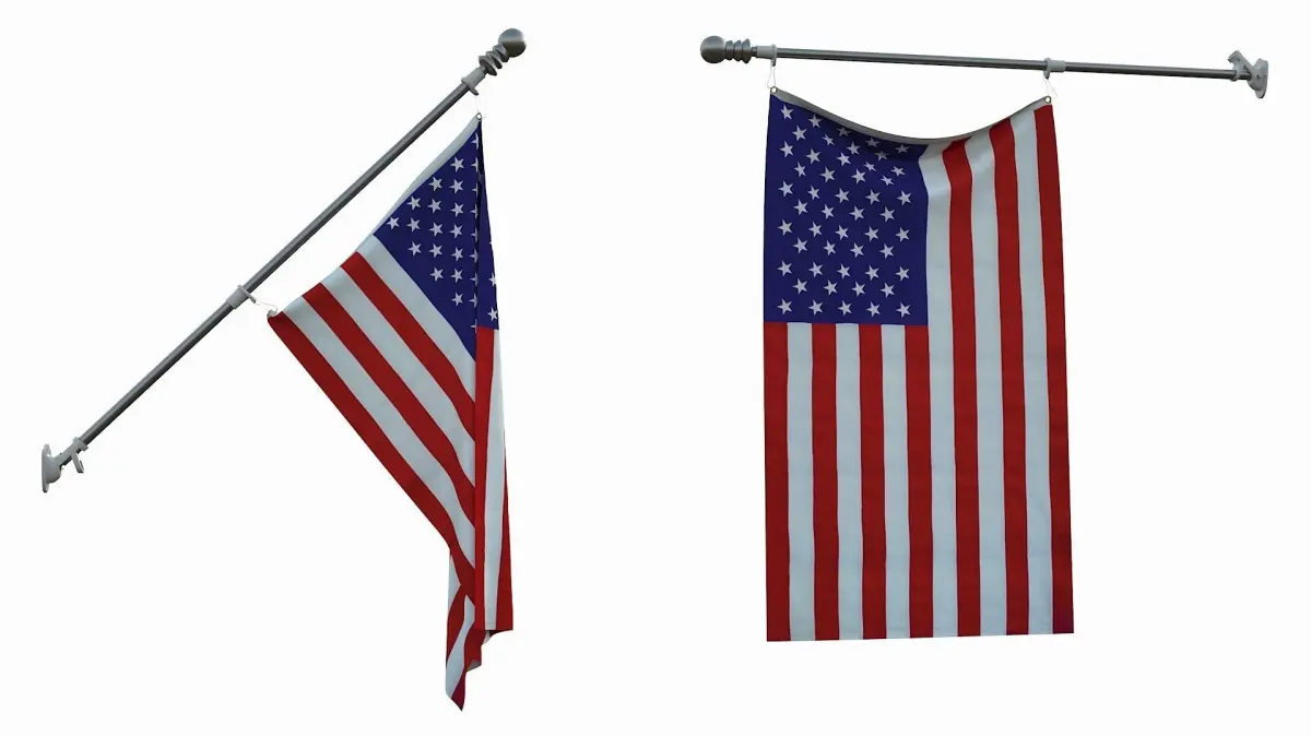 2 flagpoles 2 positions 45 degrees and horizontal.