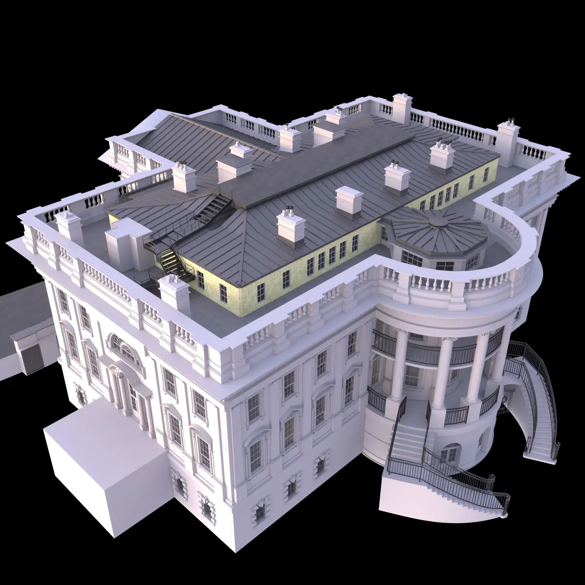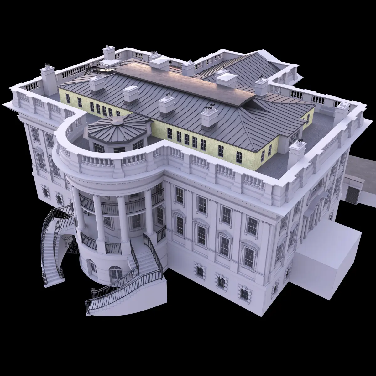 High poly model. usa white house. high detail. Good for visualizations and illustrations.