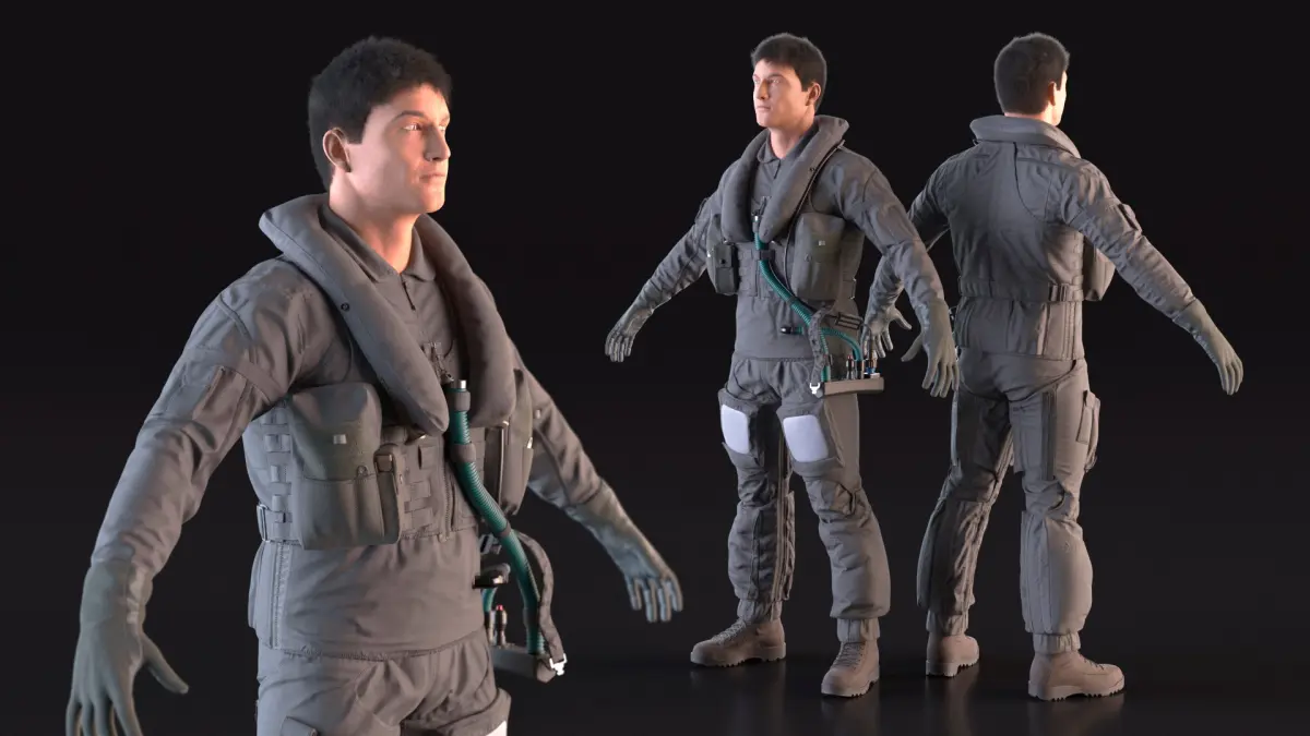 USAF Pilot Fur Rigged is a high quality, photo real 3d model that will enhance detail and realism to any of your rendering projects. The model has a fully textured, detailed design that allows for close-up renders, and was originally modeled in 3ds Max 2020 and rendered with V-Ray. Renders have no postprocessing!