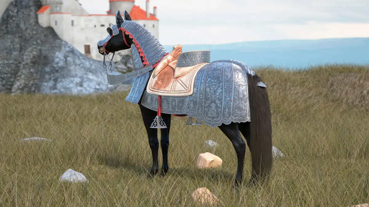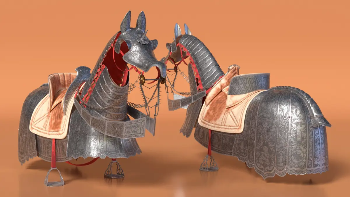Used Medieval Horse Armor is a three-dimensional model of historical cavalry horse medieval armor (empty), that was used in battle during the Middle Ages by knights.