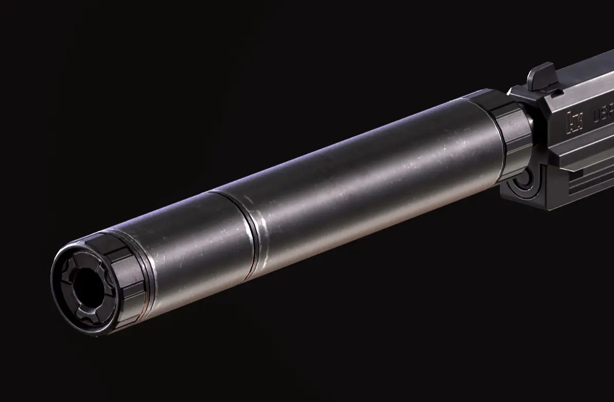 Low poly suppressor for USP pistolPoly count: 250 faces / 500 trisSingle object, optimized for real-time use.Includes 1 UV set with textures available in 4K, 2K, and 1K resolutions.Ideal for import into game engines, real-time visualizations, and VR/AR applications.Clean topology and efficient geometry for use in FPS or tactical shooters.Only suppressor model included, pistol shown for reference only.