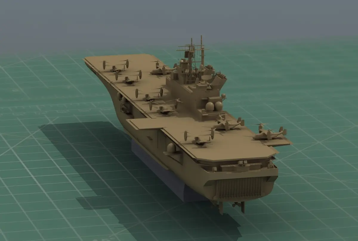 USS America LHA6 Assault Ship 3D Print Model. Includes MV-22 Osprey tilt-rotor aircraft on-deck. For a commercial license to sell hard copies of this model please get in touch. Built at 1:1 scale. Resize at your discretion. Model is shown painted in some illustrations. Model is supplied unpainted.