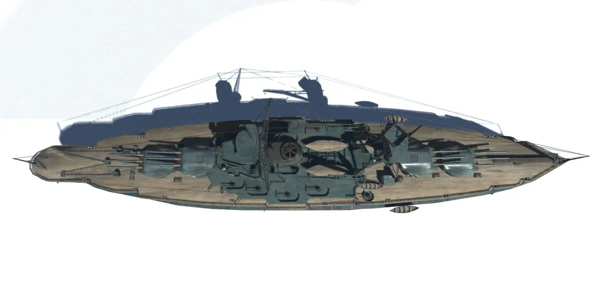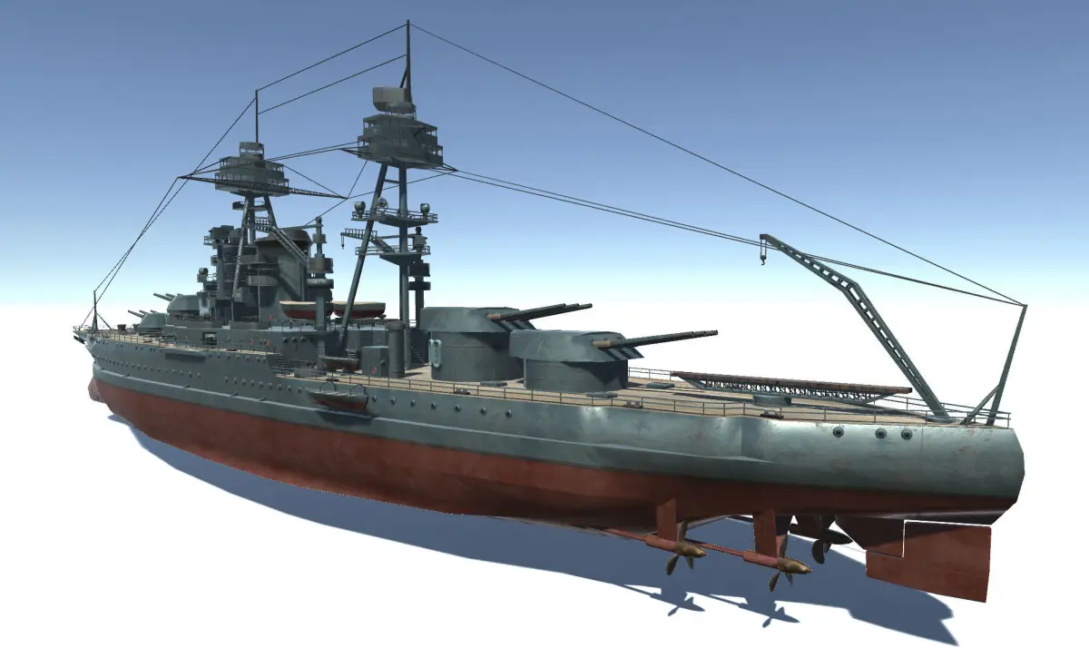 Low poly model from the USS Arizona battleship from the WWII. 4096x8192 PBR textures for the realistic render.The weapons and the other animated object separated and the pivot setuped.