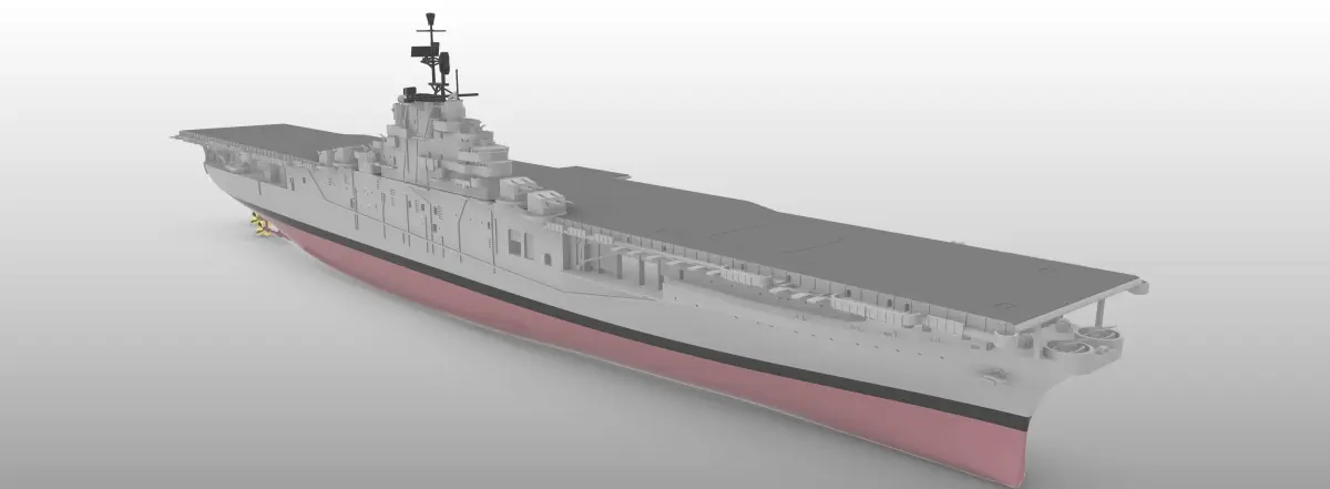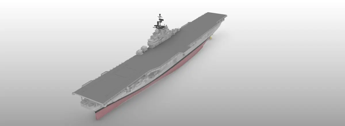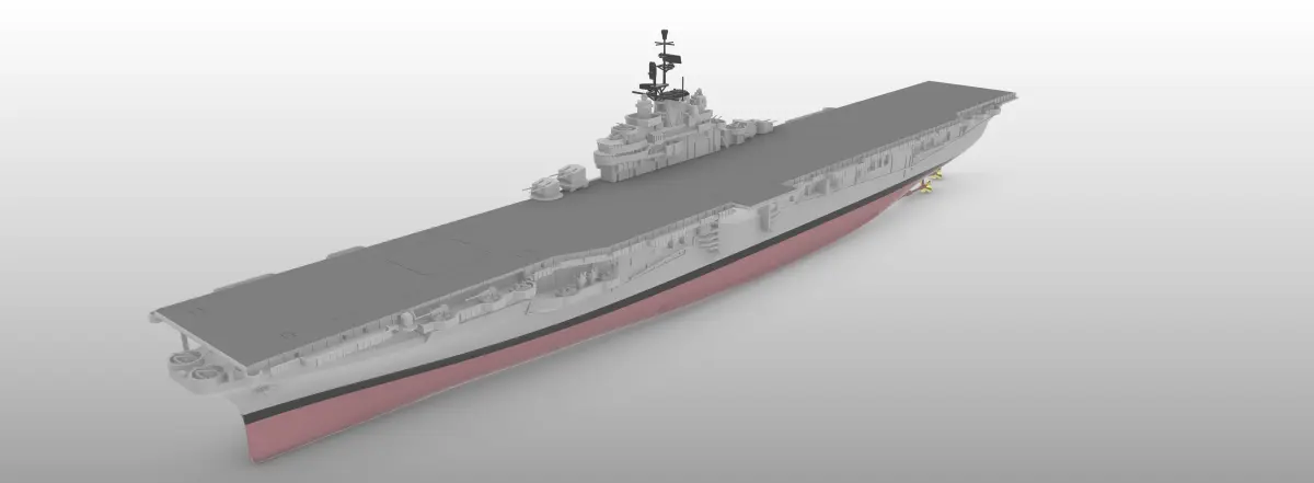 A detailed and accurate model of the US aircraft carrier USS Boxer, CV21, one of 24 Essex-class aircraft carriers of the United States Navy. The ship was reclassified as LPH 4 on 30 January 1959. Scaled at 1/1000, easily printable ay larger or smaller scales. Full hull and waterline versions are included.