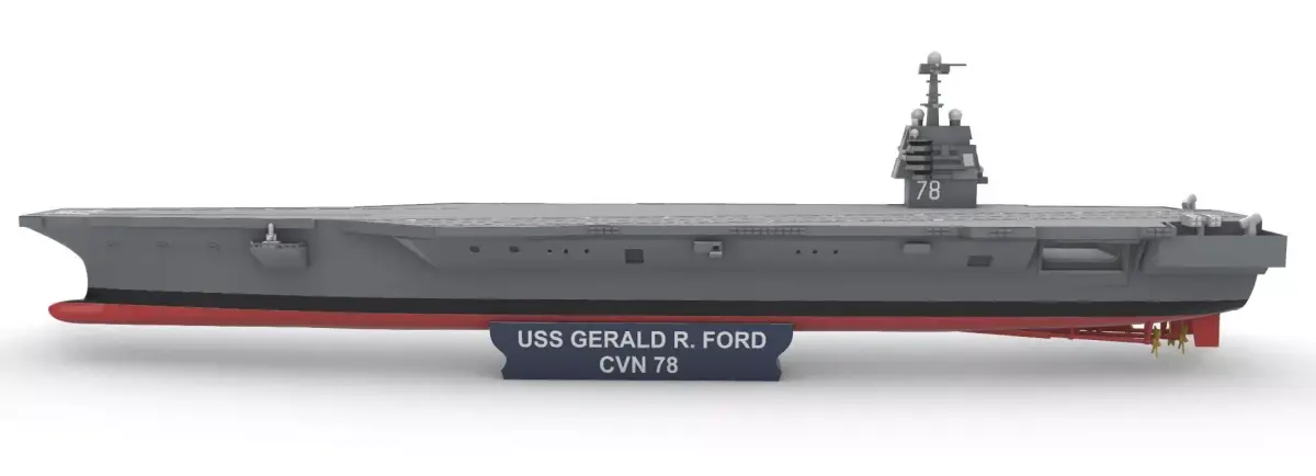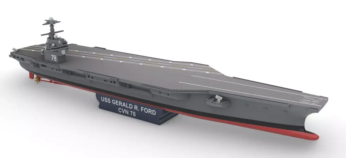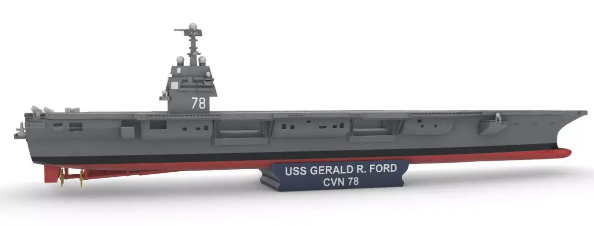 USS Gerald R. Ford (CVN-78) 1:400is a Ford-class nuclear-powered aircraft carrier, the first of a new class of aircraft carriers in the United States Navy, and the lead of the class. She is named after the 38th President of the United States, Gerald Ford, who served in the Navy during World War II.