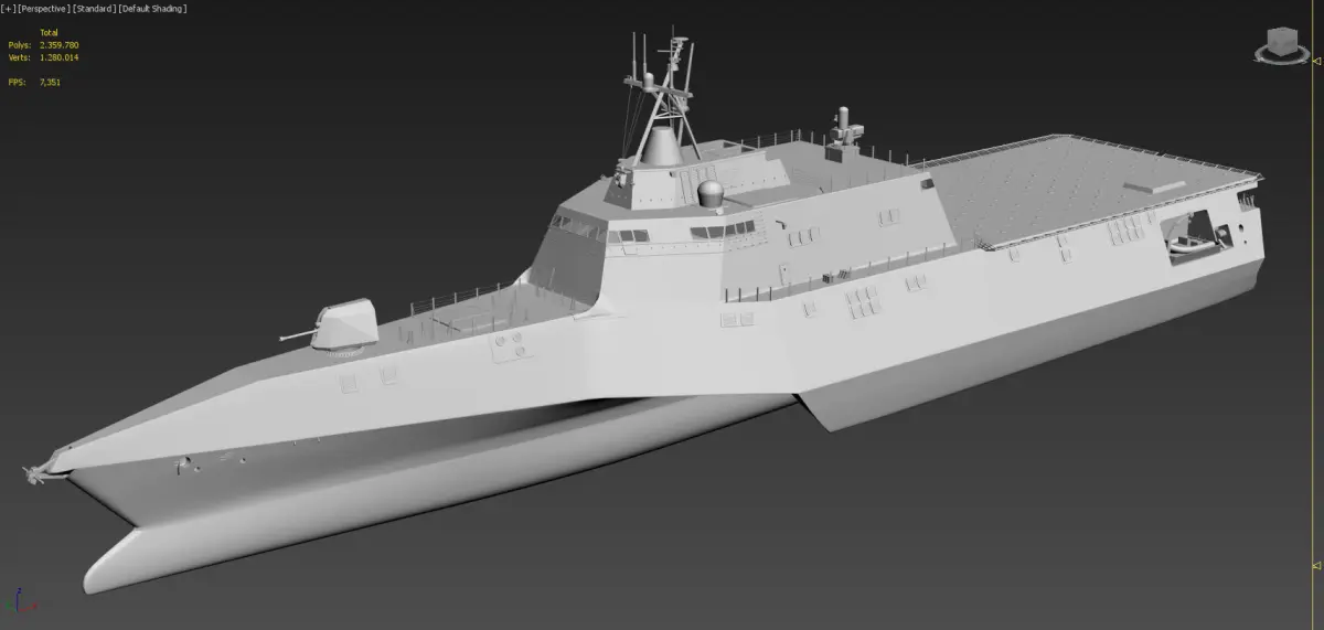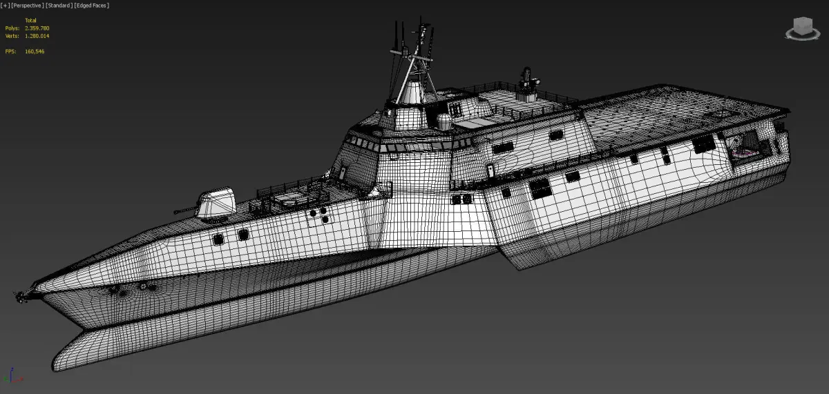 An accurate highpoly model of the uss independence lcs-2 made with 3ds max 2014 and exported as FBX and OBJ so it can be used in any 3D software, the scale of this model is 1:1, this model do not includes textures. Must of the objects of the scene are made using meshsmooth or turbosmooth with 2 iteration so in case you need the model with less polys the client would only need to reduce the iteration to 1.
