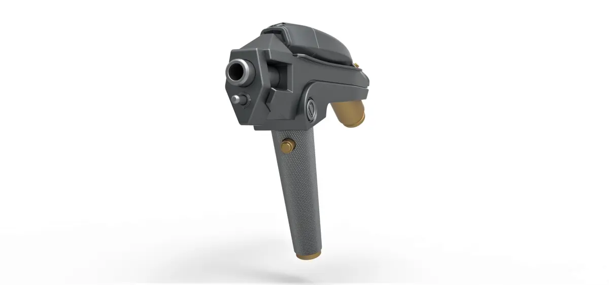 Model consists of parts: barrel, body, front insert, front pin, guide insert, handle cap, handle, rear button, rear insert, side insert 1,2, top part 1,2, trigger.