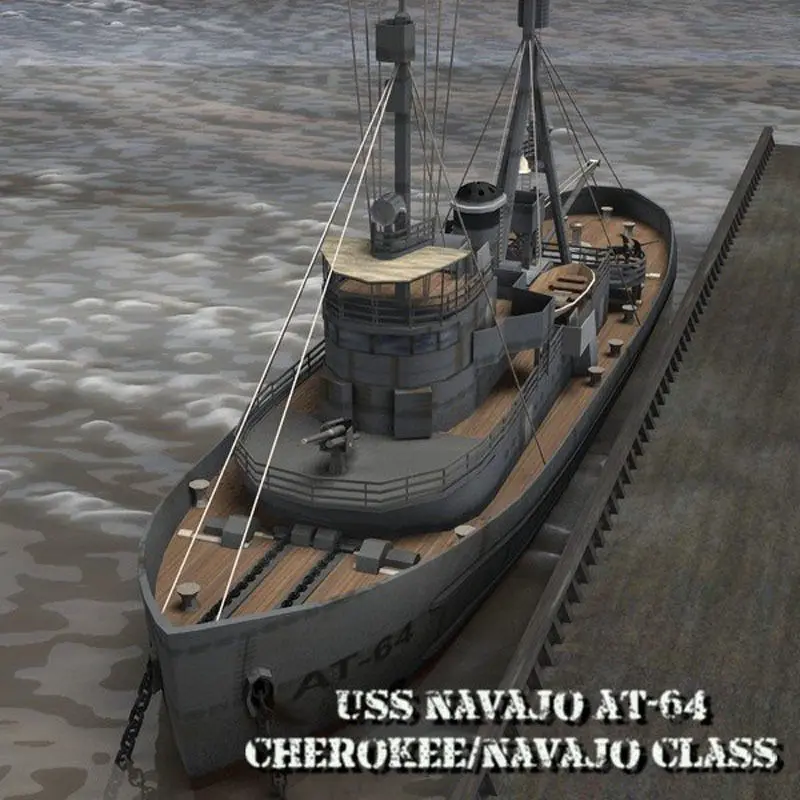 USS Navajo (AT-64) was the lead ship of her class. She was named for the Navajo people. Navajo was laid down by the Bethlehem Shipbuilding Corporation, Staten Island, New York, on 12 December 1938; launched on 17 August 1939; sponsored by Miss Olive Rasmussen; and commissioned on 26 January 1940, Lt. Comdr. M. E. Thomas in command.