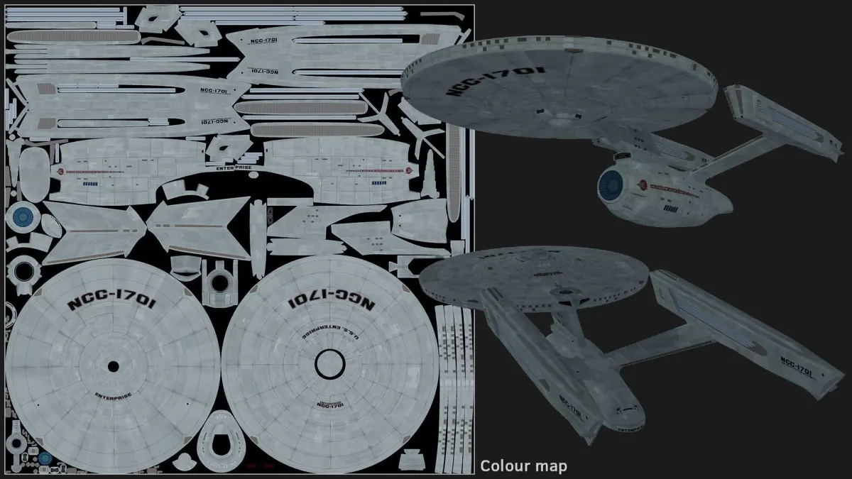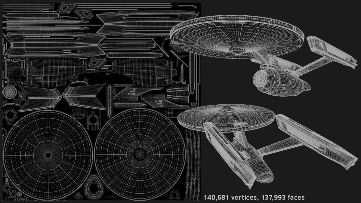 Detailed model of the USS Enterprise from Star Trek - specifically the 'refit' version seen in the first three theatrical movies.