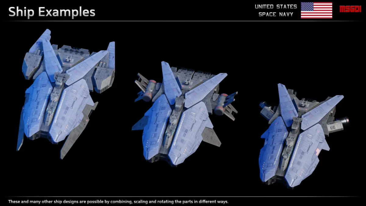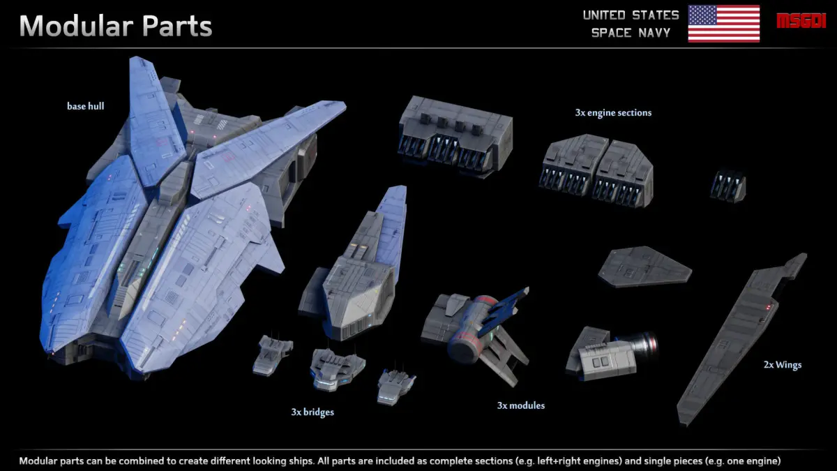 - Spaceship consists of modular parts