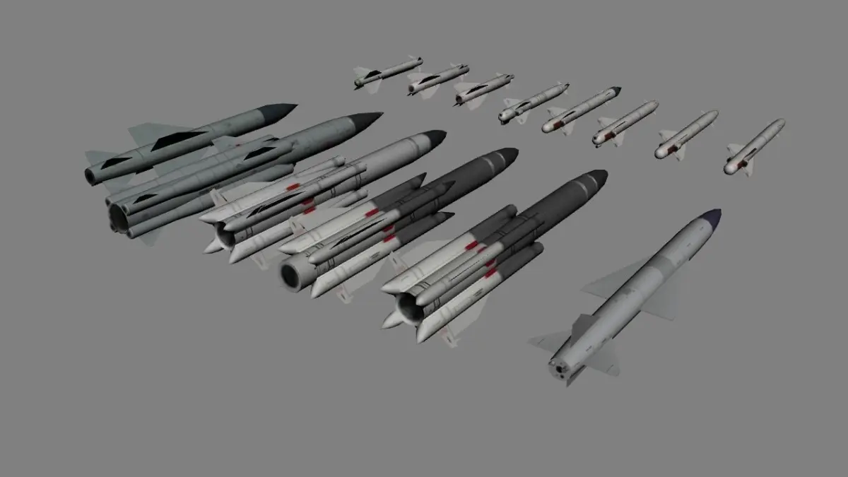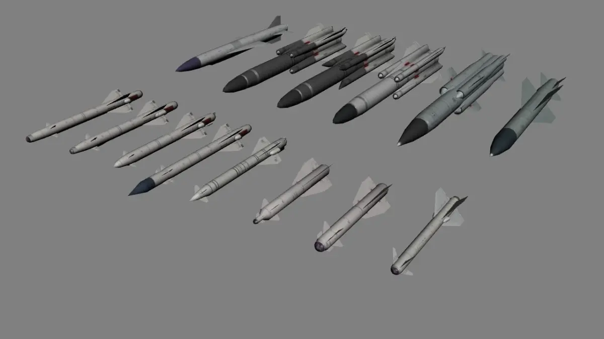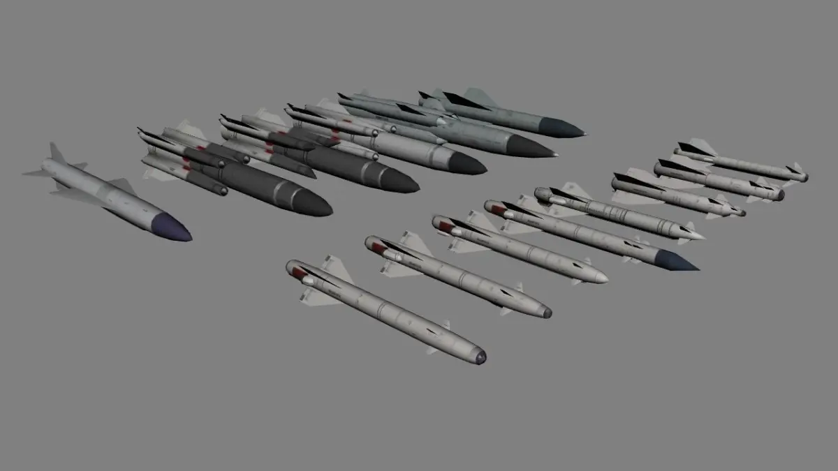 Russian and Soviet missiles pack includes the following aircraft missiles whith modifications:AS-7 Kerry (Kh-23 Grom)AS-10 Karen (Kh-25)AS-9 Kyle (Kh-28)AS-14 Kedge (Kh-29)AS-17 Krypton (Kh-31)SS-N-22 Sunburn (Kh-41)AS-11 Kilter (Kh-58)AS-13 Kingbolt (Kh-59)