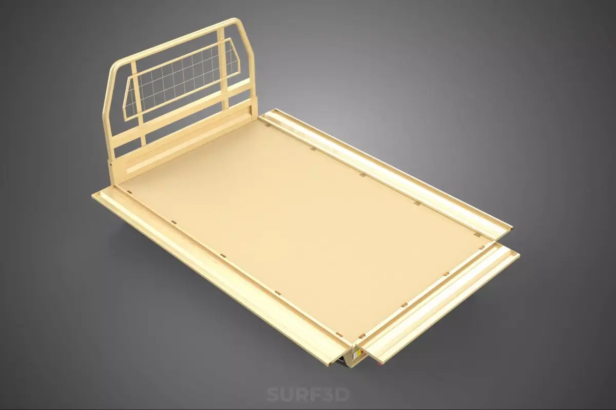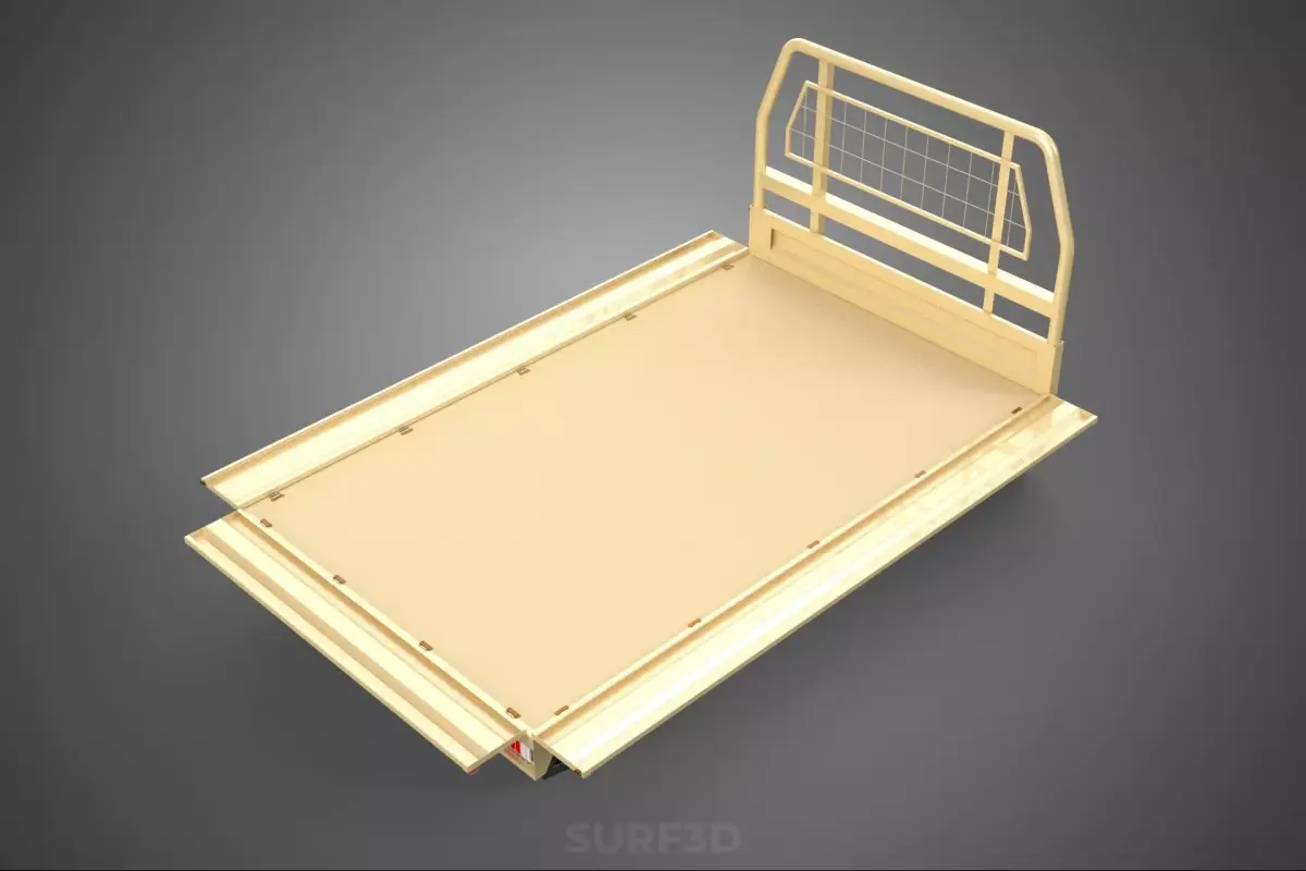 KEYWORDS: Ute, Bakkie, Pickup truck, Load bed, Drop side, Flatbed truck body, Cargo platform, Utility vehicle, Commercial vehicle, Truck body, Open deck, Three-way access, Side loading, Rear loading, Wide deck design, Cargo capacity, Versatility, Modular body, Chassis cab, Payload capacity, Material transport, Logistics equipment, Agricultural transport, Construction vehicle, Landscaping equipment, Delivery vehicle, Industrial transport, Material handling, Utility body, Customizable load bed