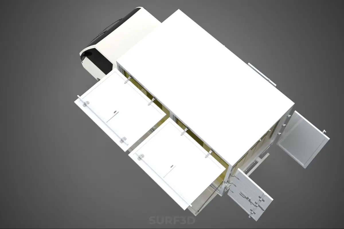 - An enclosed box body (BOX TRUCK/CUBE VAN) for secure transport, OR